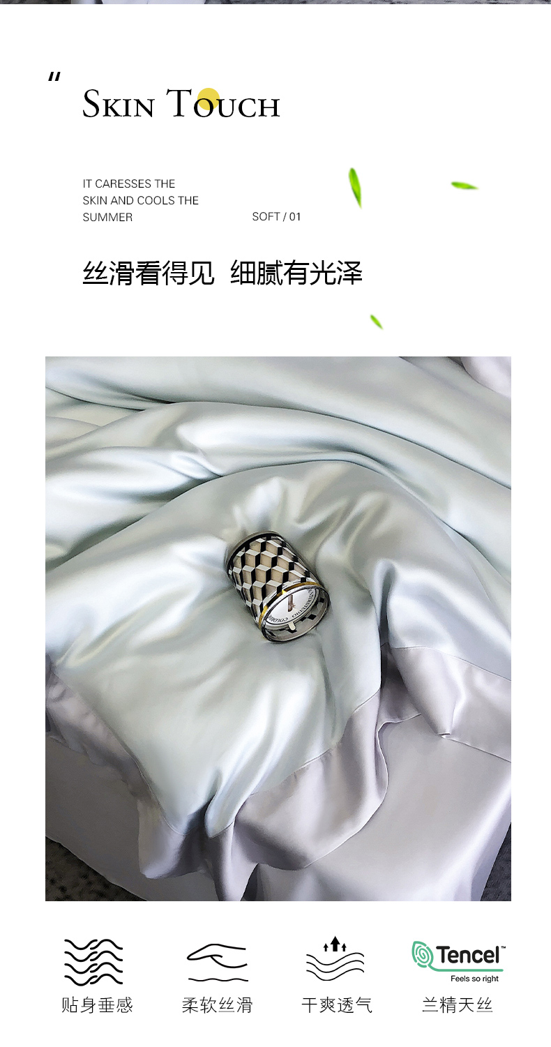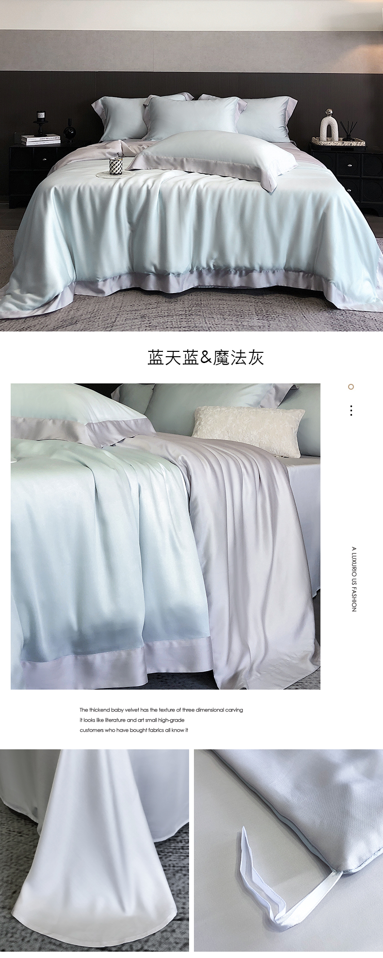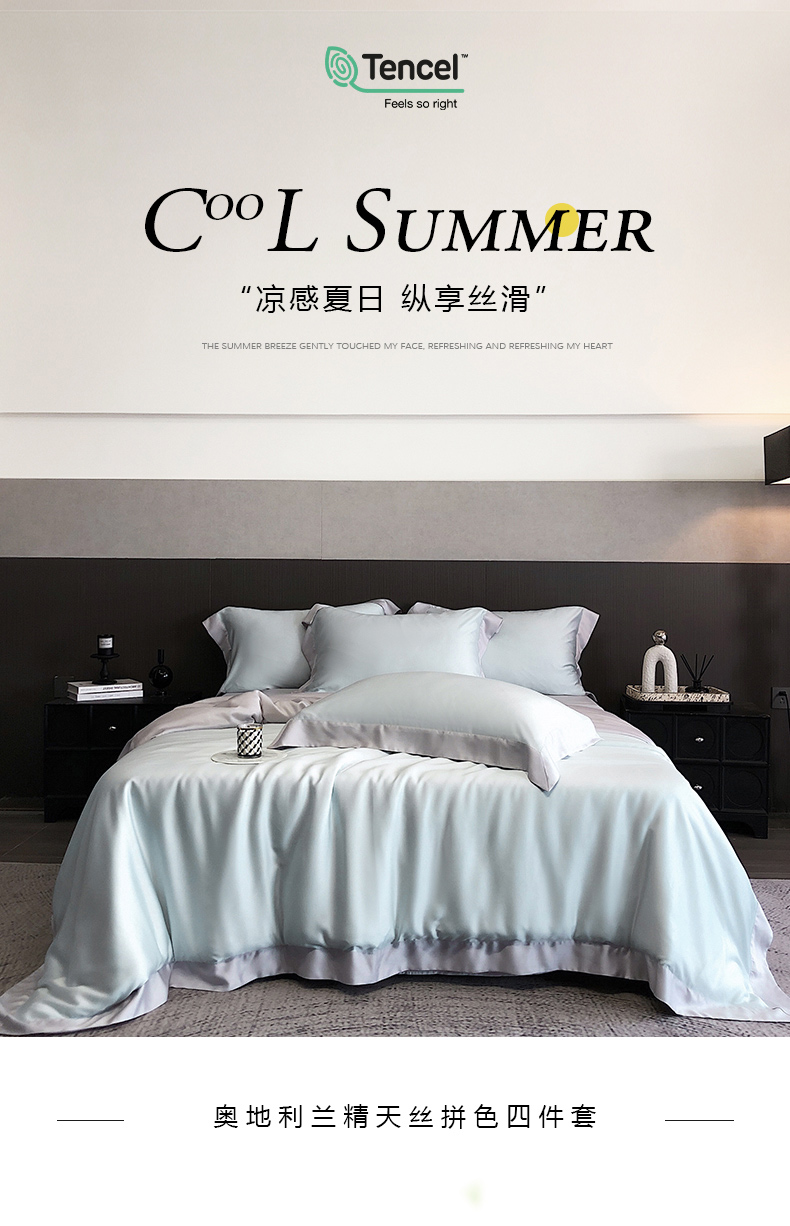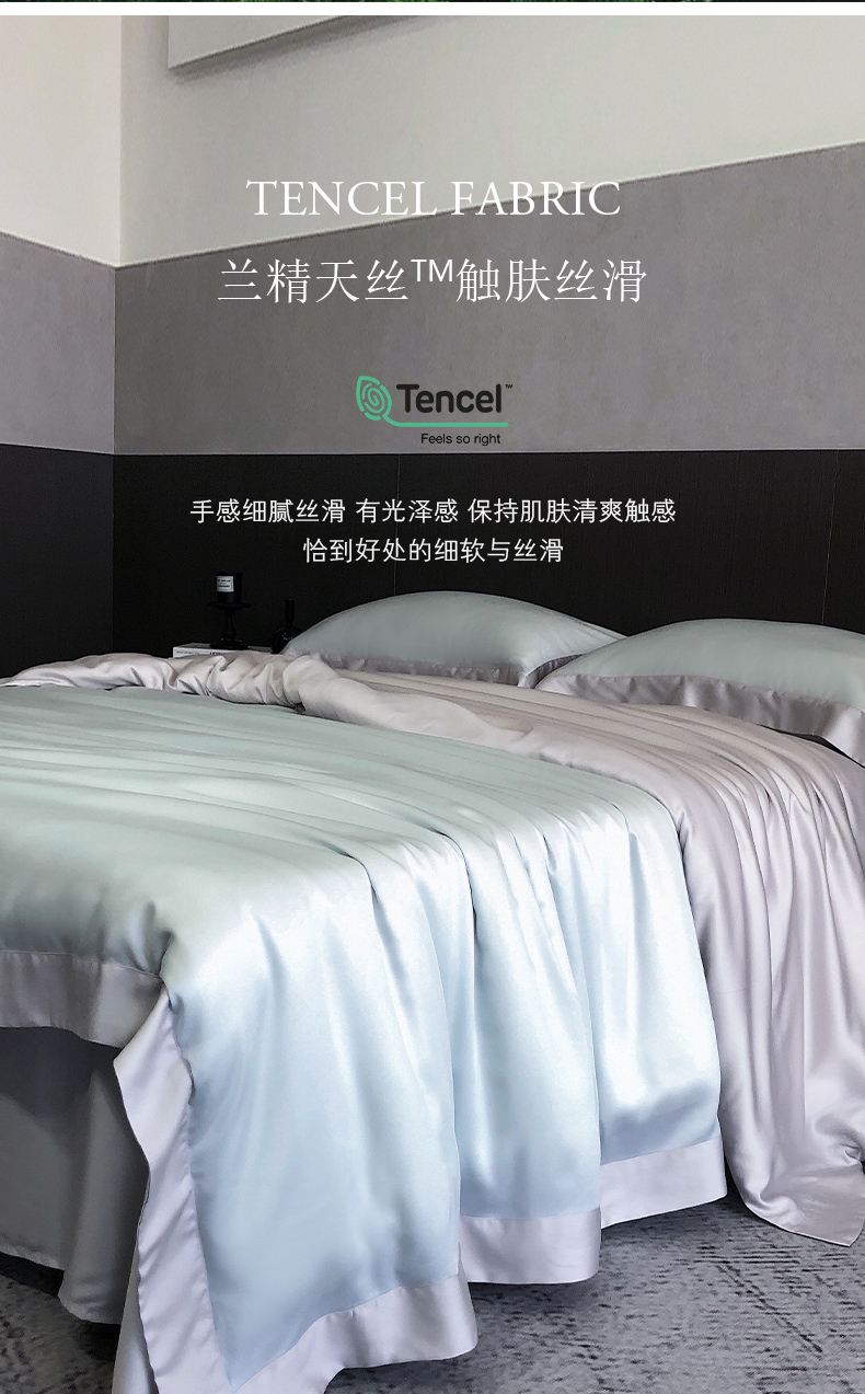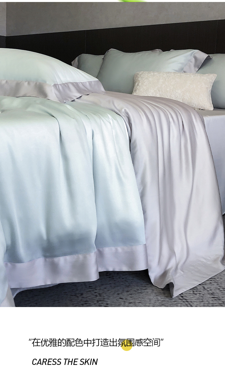 商品名称:云栖家居 2025莱赛尔60兰精天丝双拼纯色四件套 蓝天蓝&魔法灰