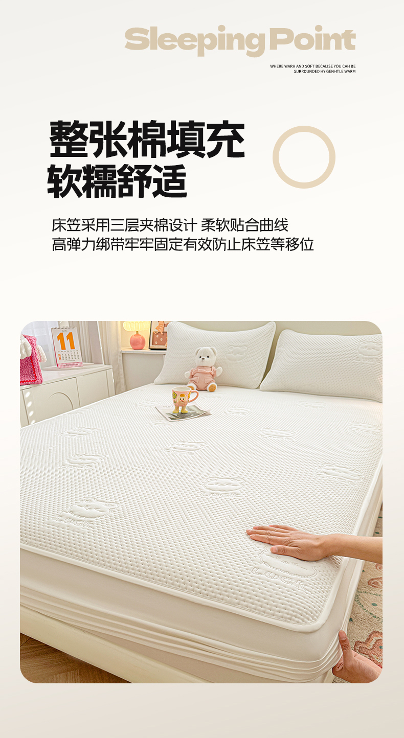 喜居 2025新款幸运多-夹棉床笠系列 幸运多-米白