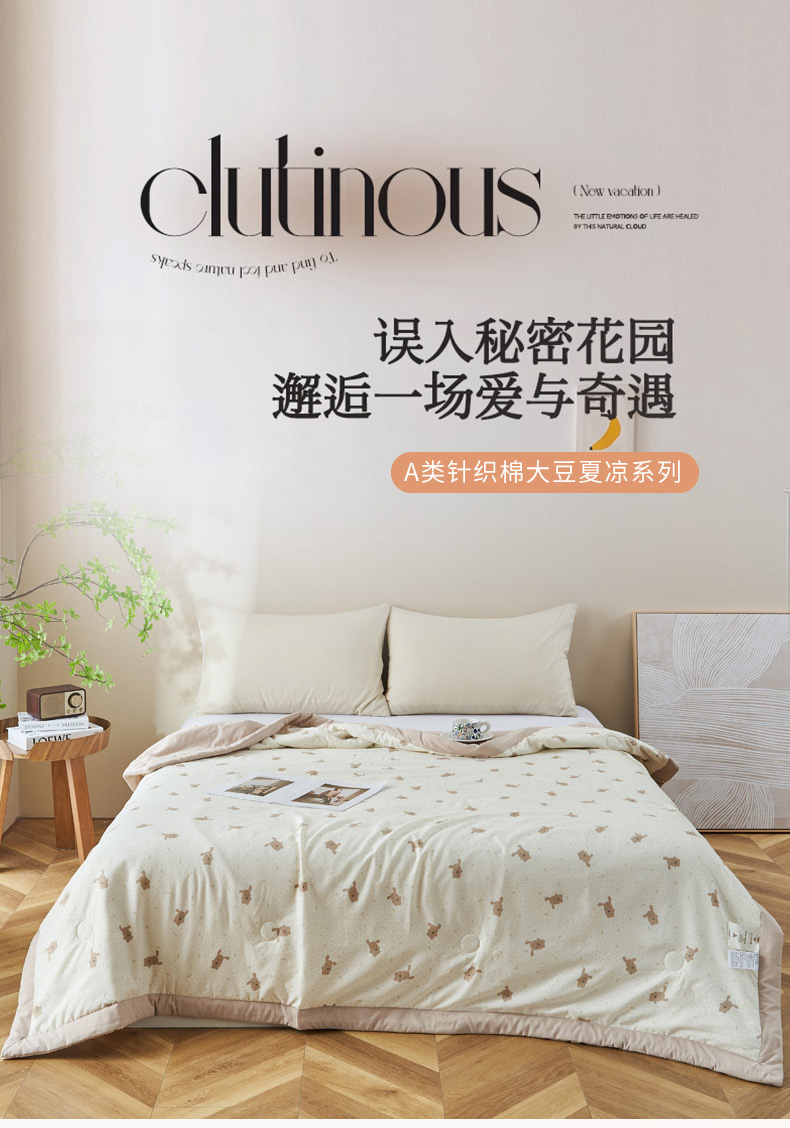 商品名称:森林人 2025新款A类针织棉大豆夏凉被 萌兔咖