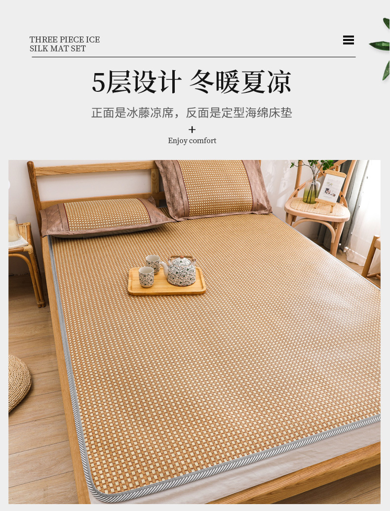 当前位置: 91家纺网 > 商品网购 > 床上用品 > 凉席 > 藤席 > 小牛席业2025新款宜家风日式两用凉席【圆角款】凉席藤席冰藤席竹席空调席草席冰丝席豆豆席乳胶席三件套 白玉藤席【日式圆角款】