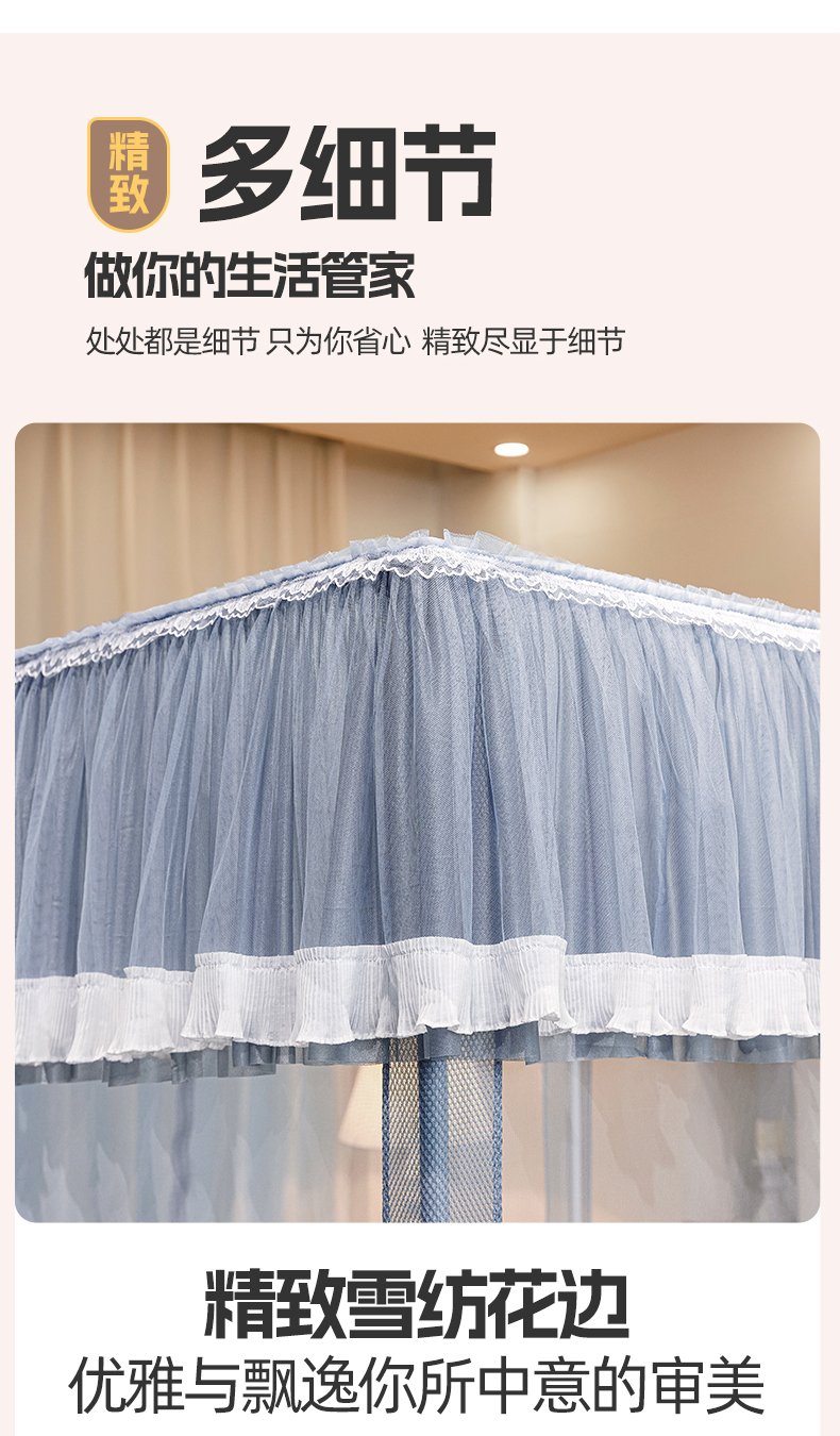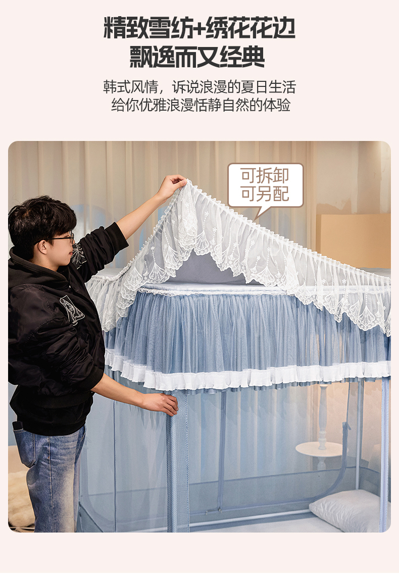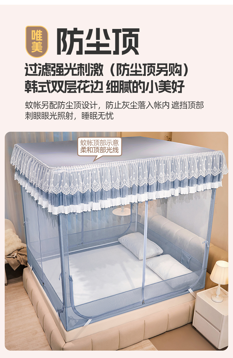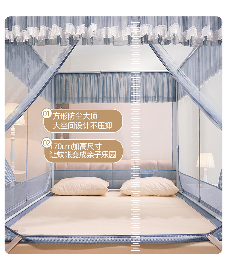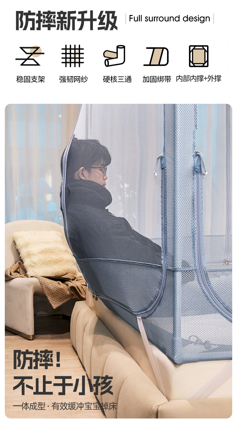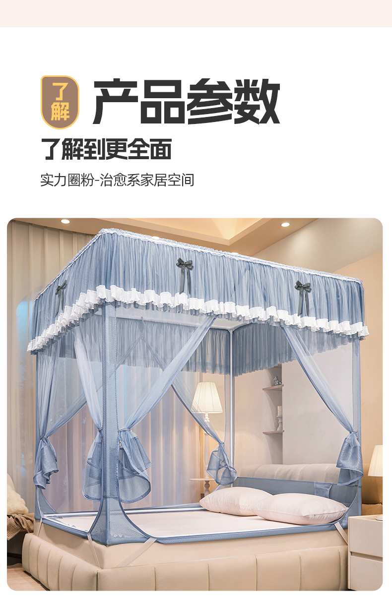 当前位置: 91家纺网 > 商品网购 > 床上用品 > 蚊帐 > 坐床式蚊帐 > 夏彩 2025新款浪漫唯美T+U大空间坐床防摔蚊帐-88608 88608T-蓝灰