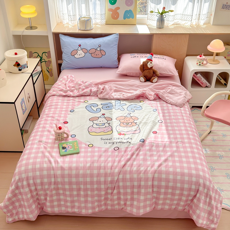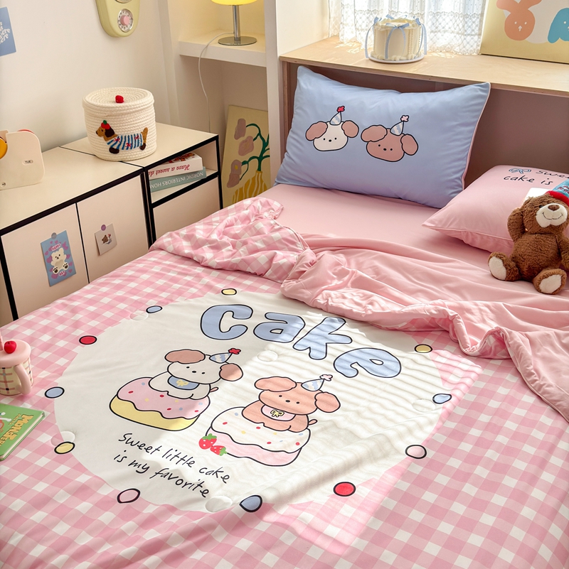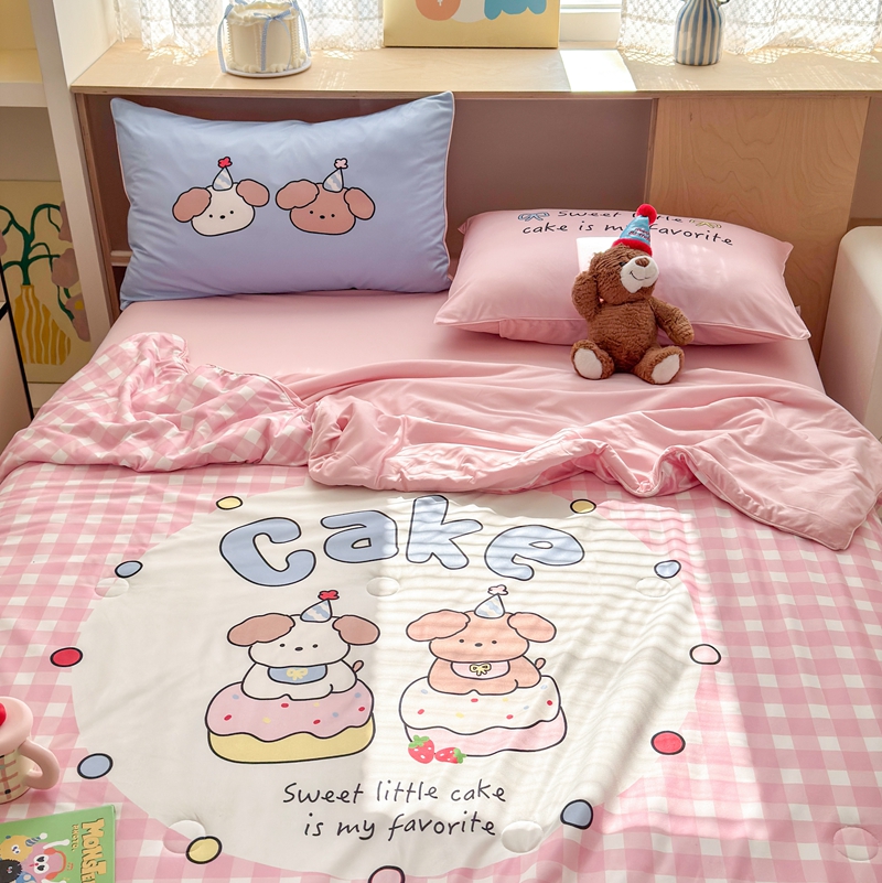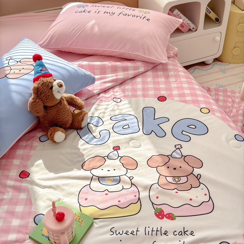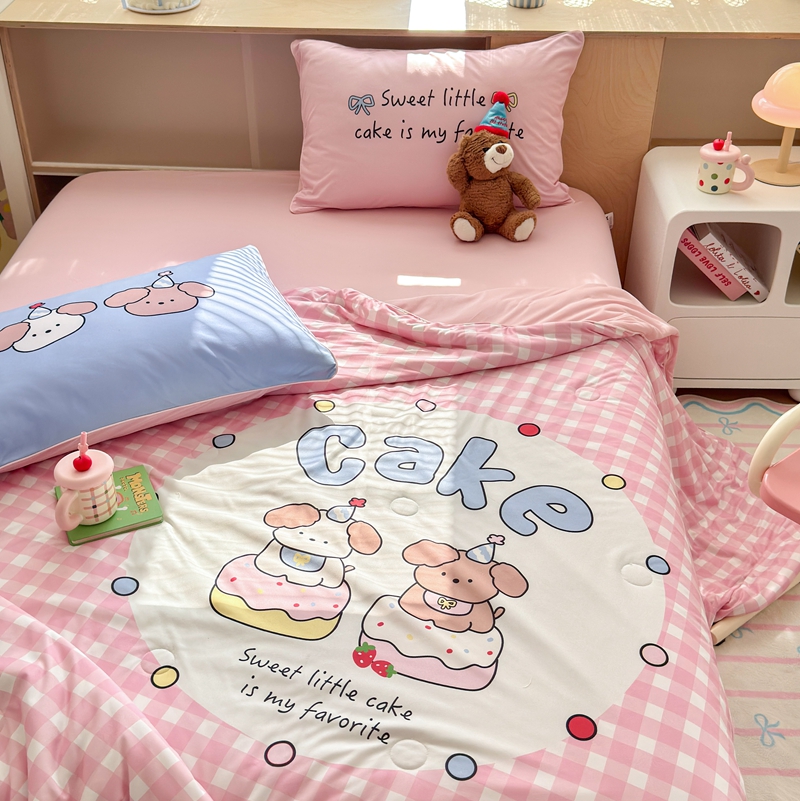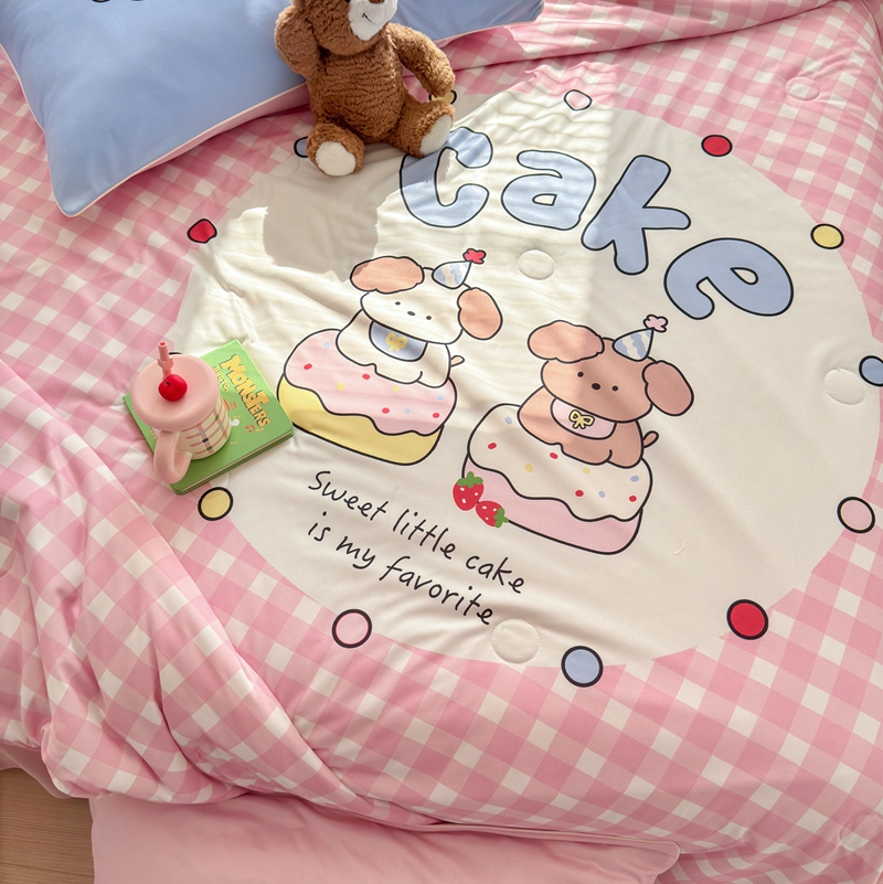 商品名称:星期八 2025新款针织棉夏被四件套 小狗蛋糕