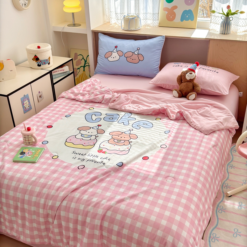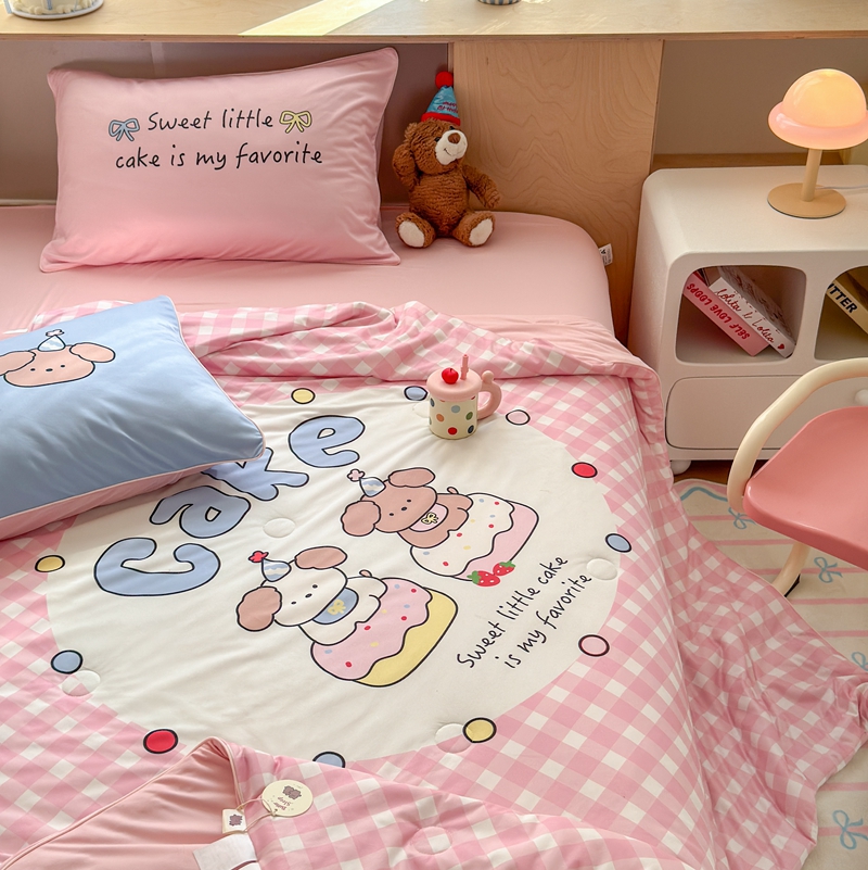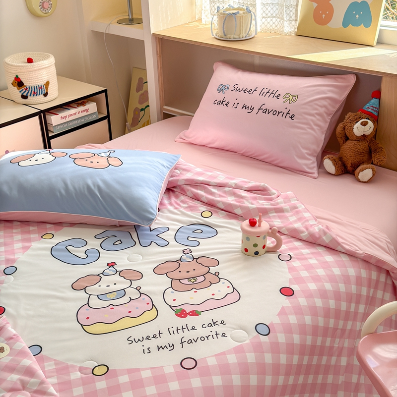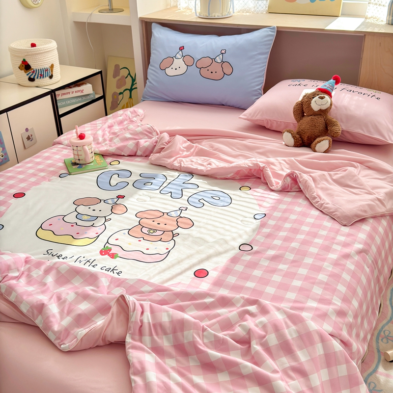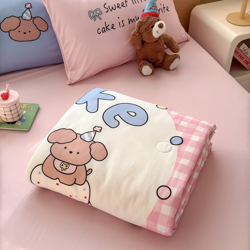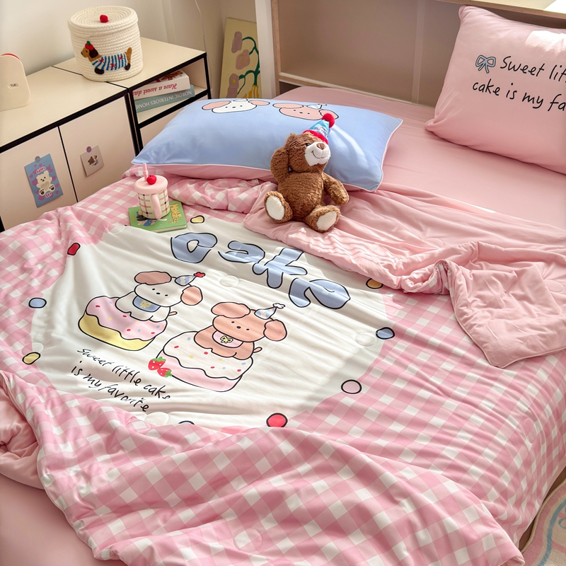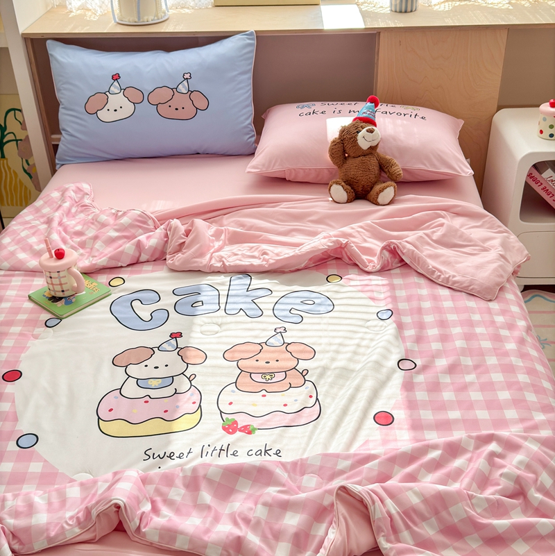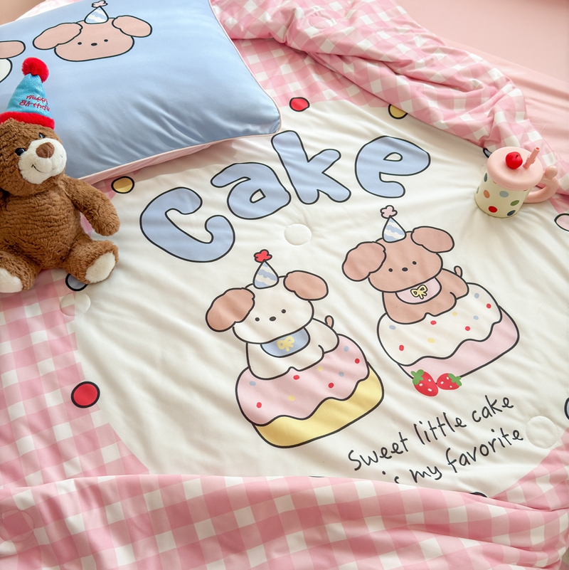 星期八 2025新款针织棉夏被四件套 小狗蛋糕