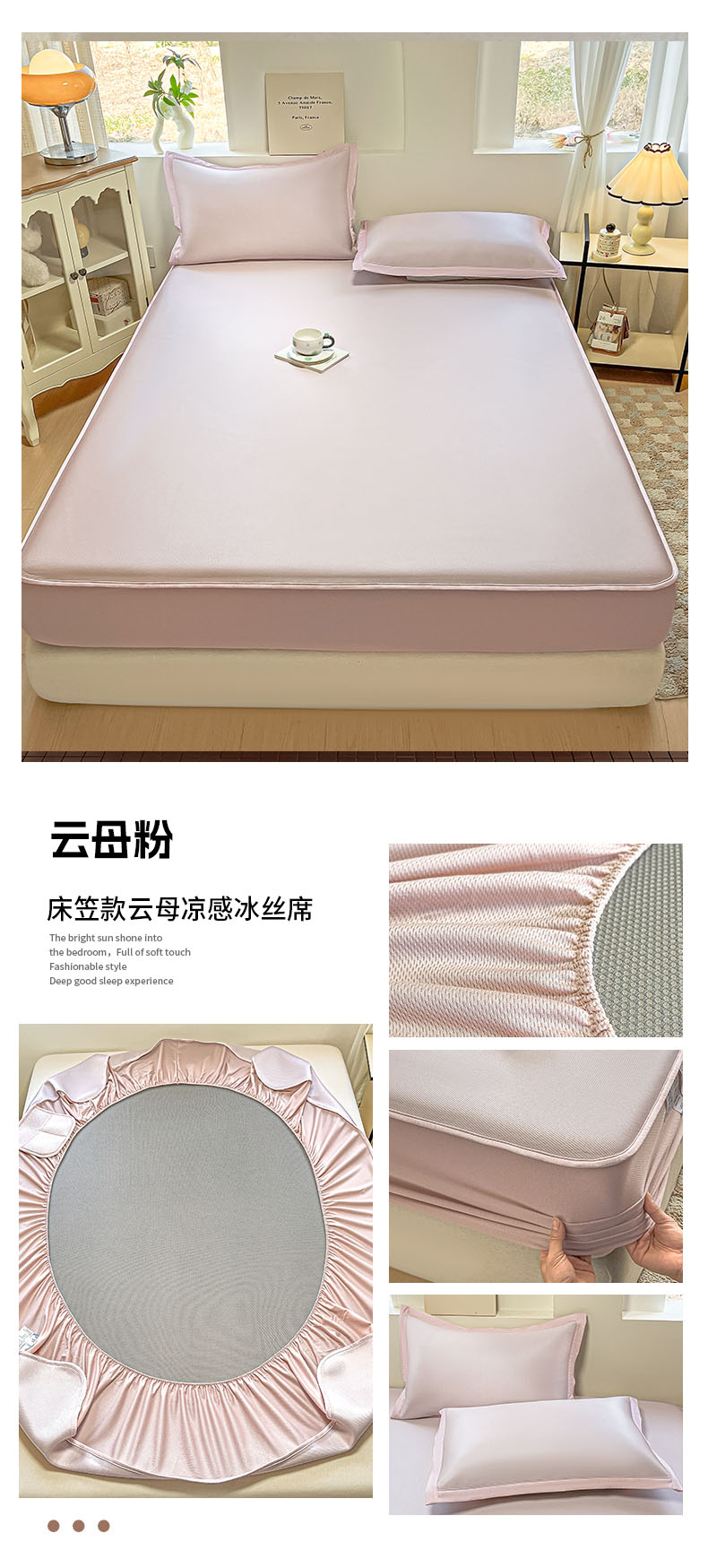 鑫琪莱家纺 2025云母凉感冰丝席 床笠款-云母粉