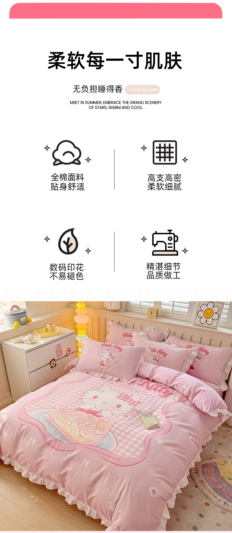 当前位置: 91家纺网 > 商品网购 > 床品套件 > 四件套 > 全棉普通四件套 > 玉元坊 2025新款三丽鸥系列数码印花纯棉全棉床裙三件套四件套-花边款 花边款-心动凯蒂
