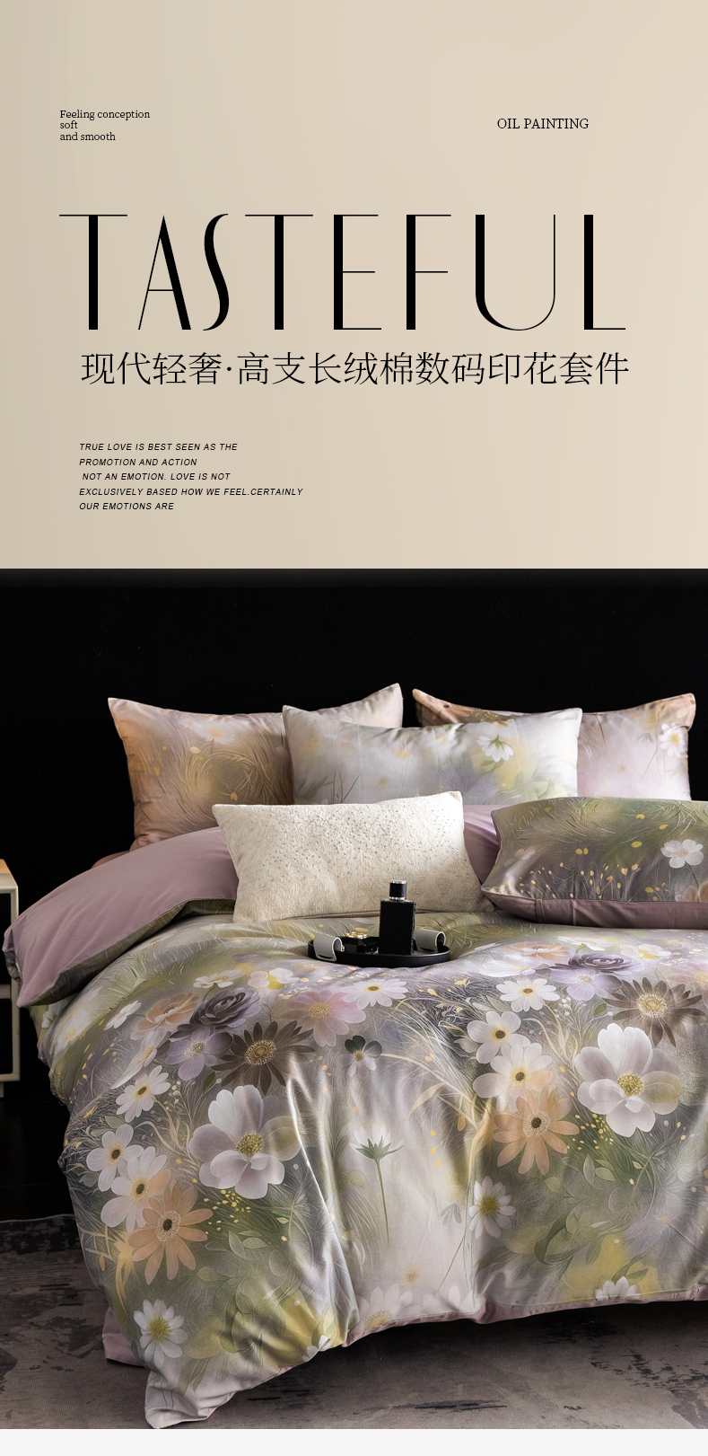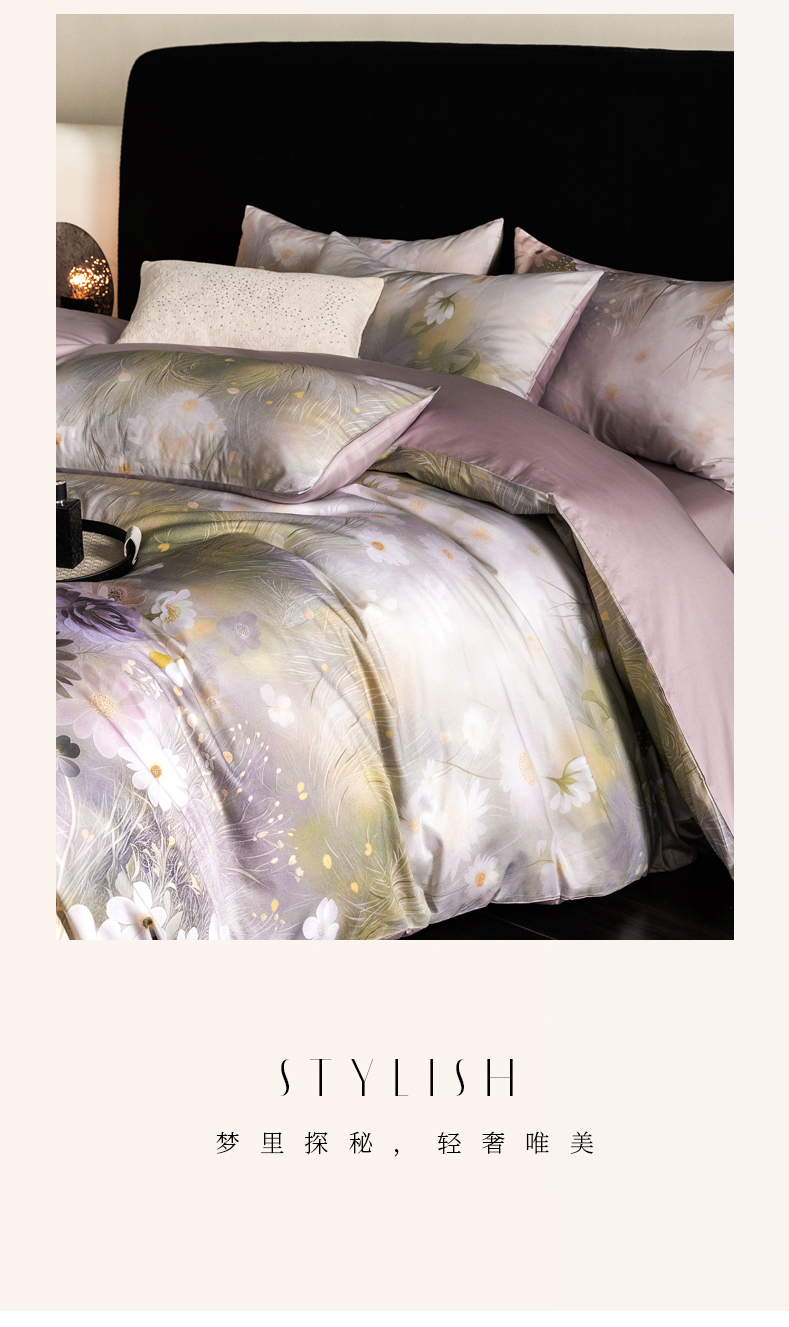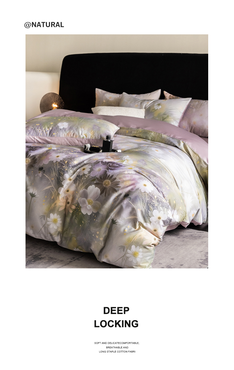 立奥被业 2025新款60S数码印花四件套四件套 繁花紫