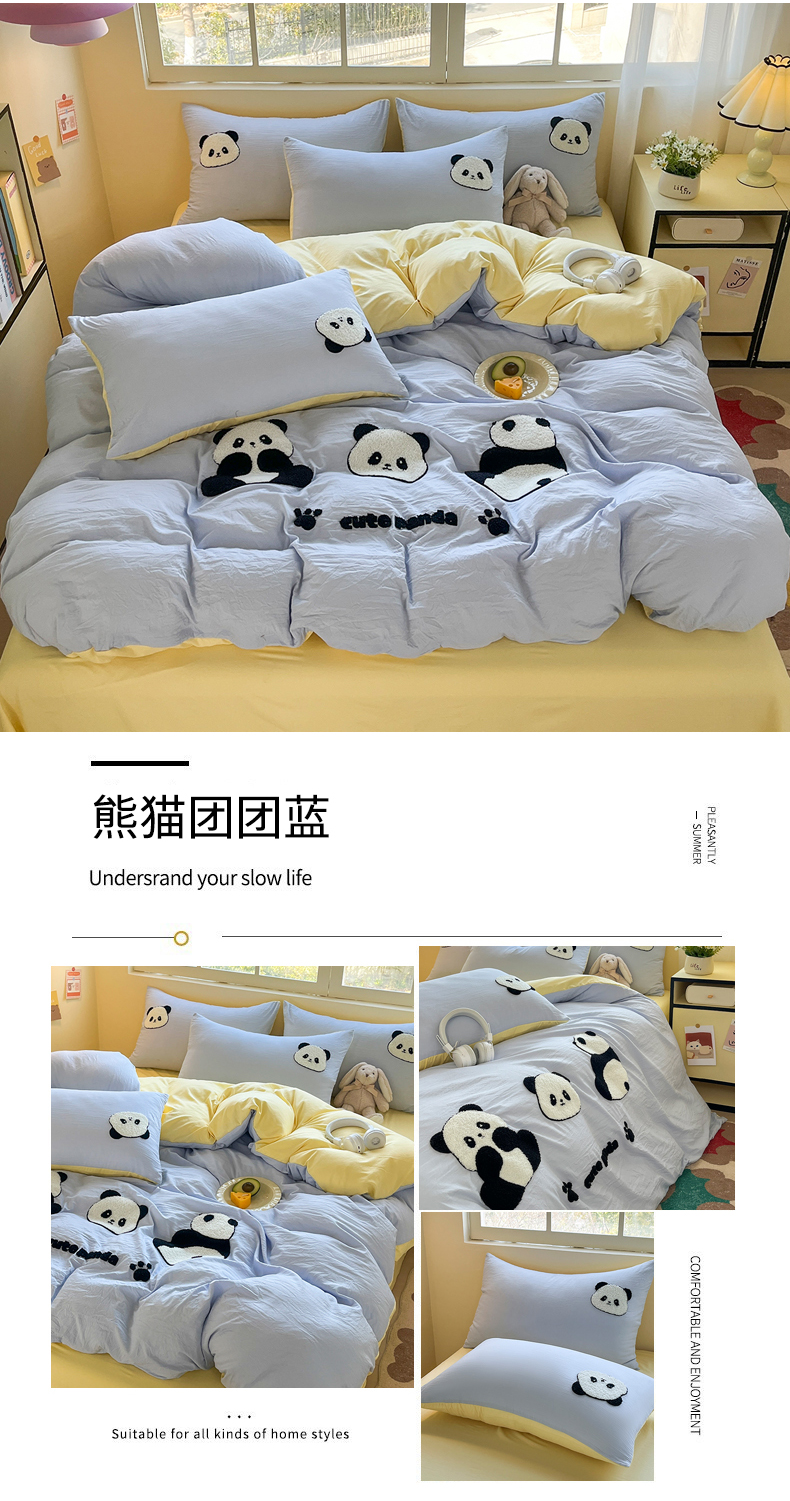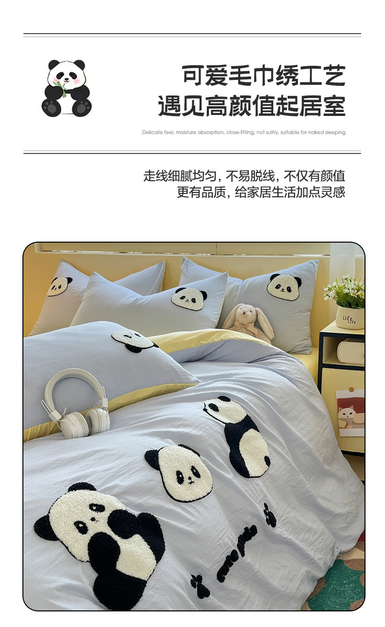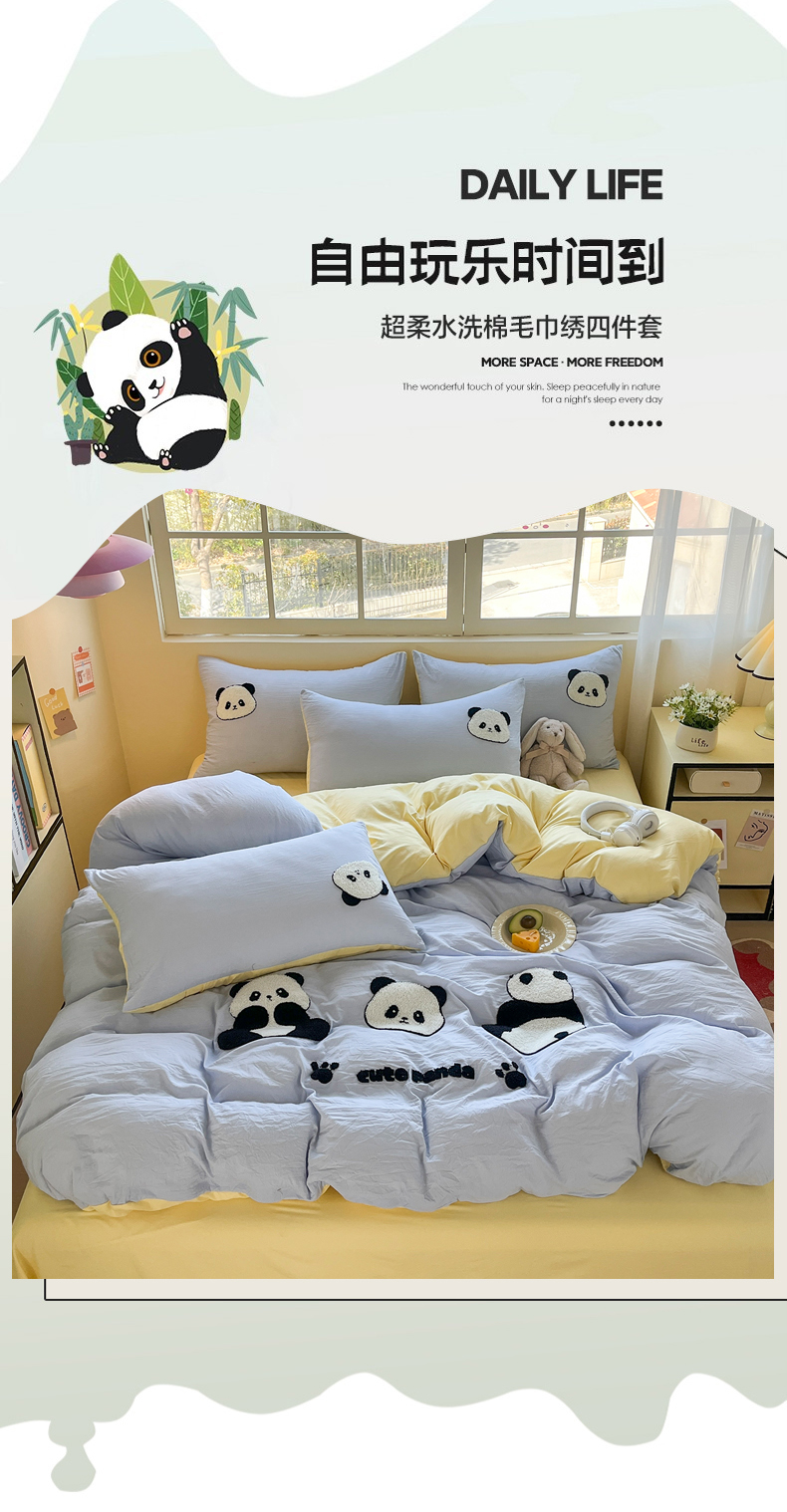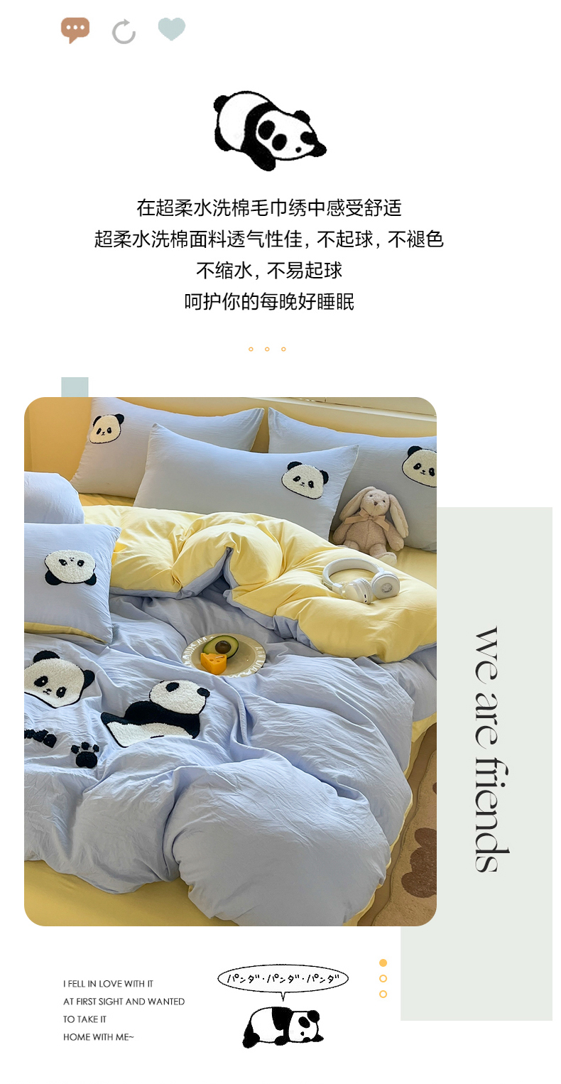 当前位置: 91家纺网 > 商品网购 > 床品套件 > 四件套 > 水洗棉四件套 > N先生+V 13814689556 发大图/买家秀 2025新款超柔水洗棉毛巾绣四件套--熊猫团团系列 熊猫团团蓝