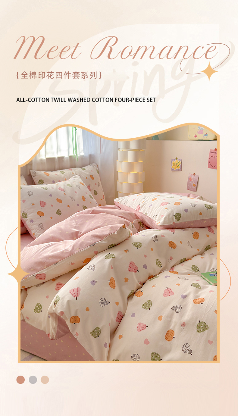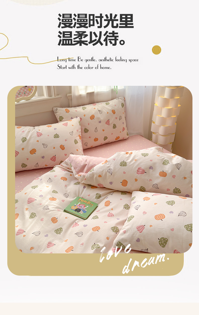 当前位置: 91家纺网 > 商品网购 > 床品套件 > 四件套 > 全棉普通四件套 > 清雅福 2025全棉13372小清新四件套和单被套早春系列第二批--四件套 南瓜佳人