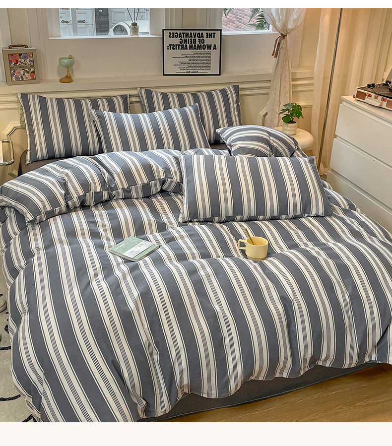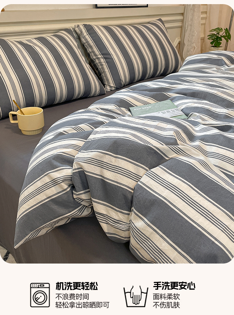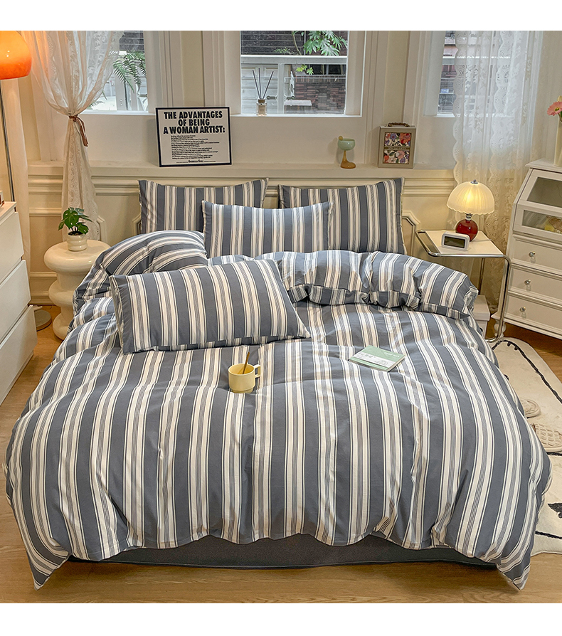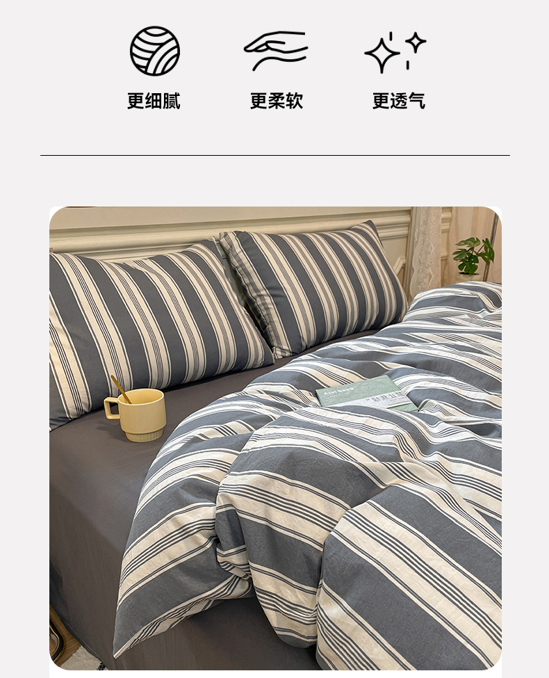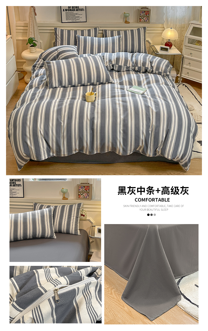 当前位置: 91家纺网 > 商品网购 > 床品套件 > 四件套 > 水洗棉四件套 > 盛秋家纺 2025新款水洗棉格子系列四件套黑灰中条+高级灰