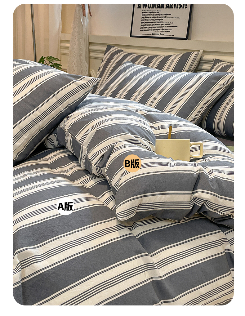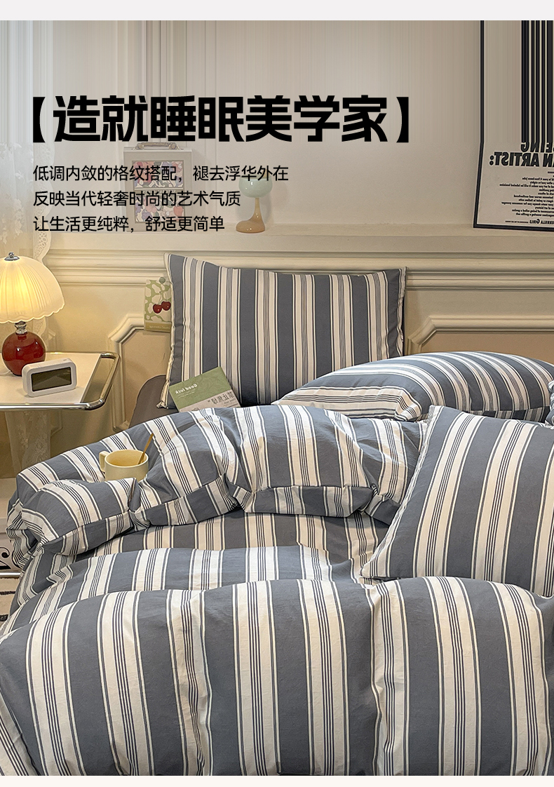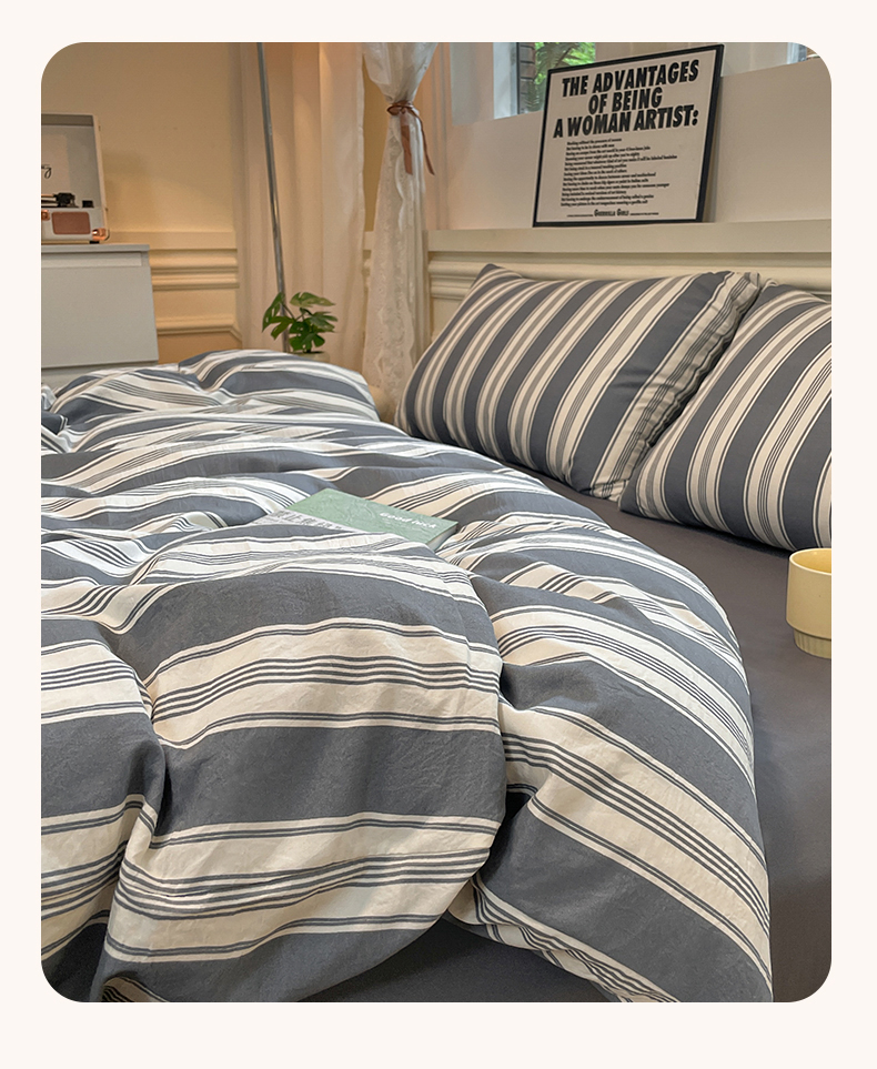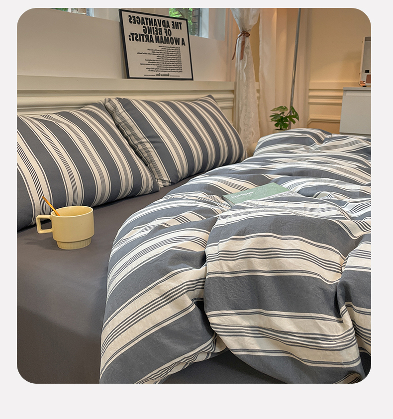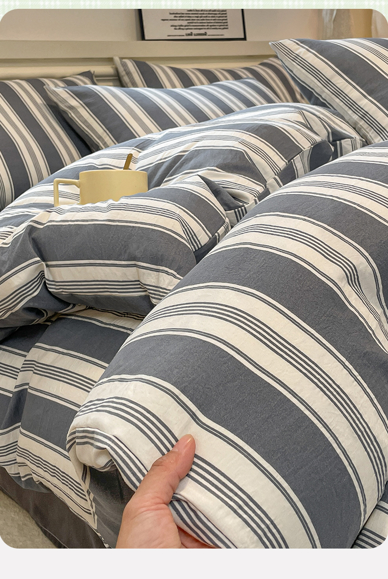 当前位置: 91家纺网 > 商品网购 > 床品套件 > 四件套 > 水洗棉四件套 > 盛秋家纺 2025新款水洗棉格子系列四件套黑灰中条+高级灰