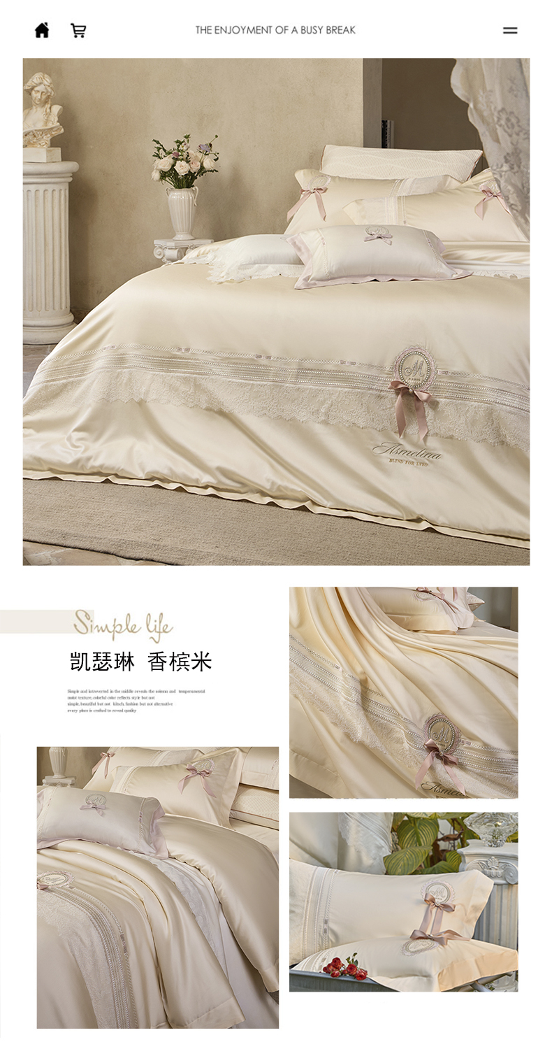 (总)诗黛尔 2025秋冬新款长绒棉刺绣香缇卡系列四件套,卡其色,落樱粉,南瓜橘,绅士灰,水晶兰,油果绿