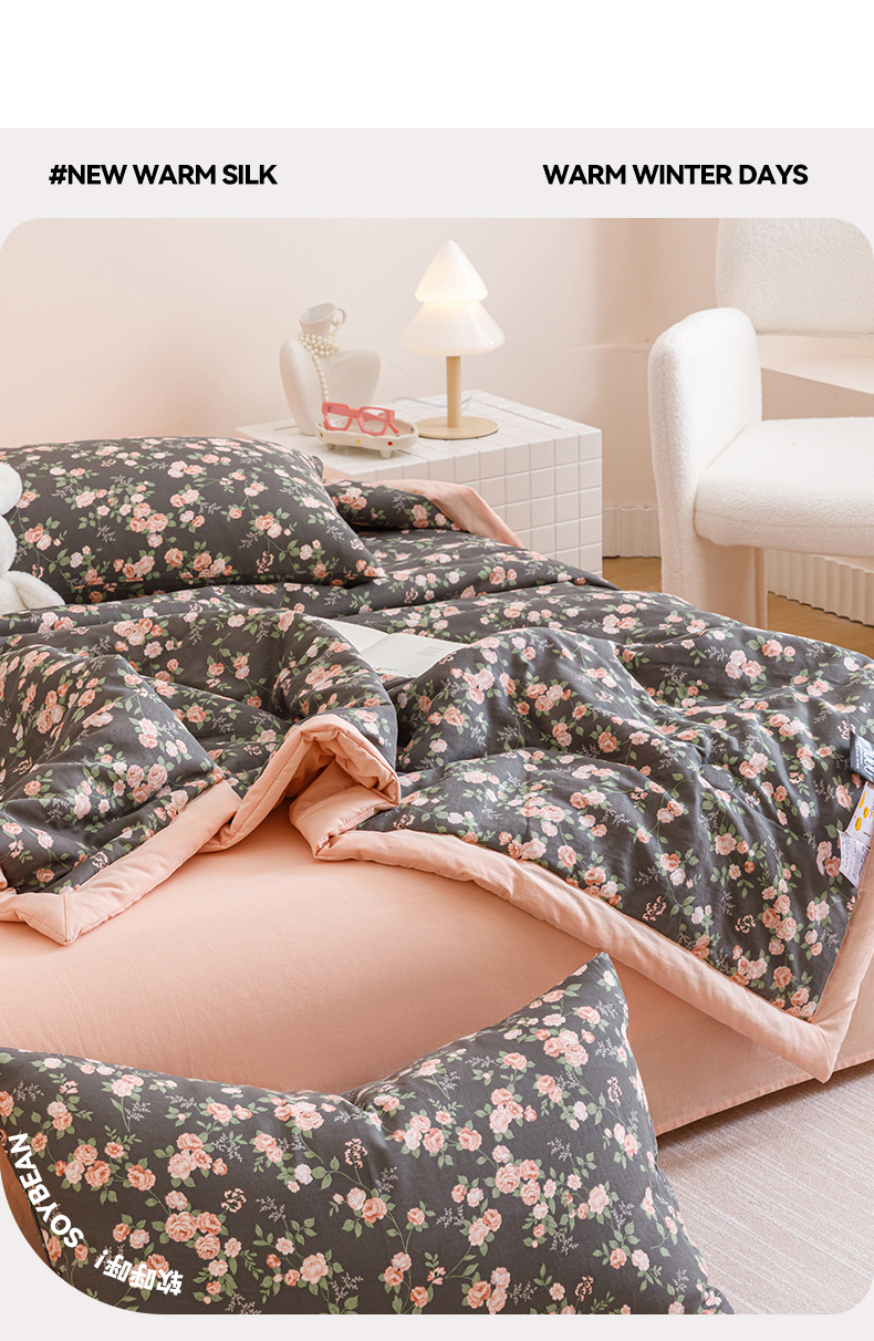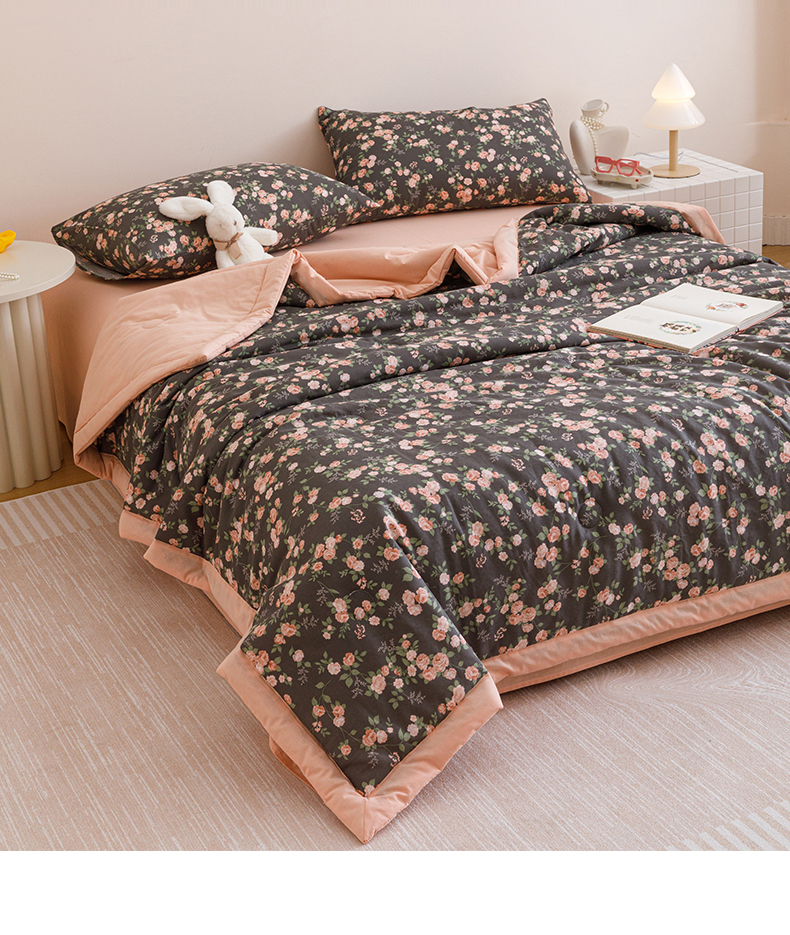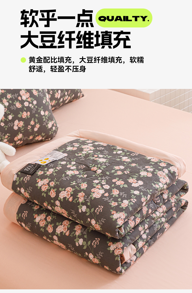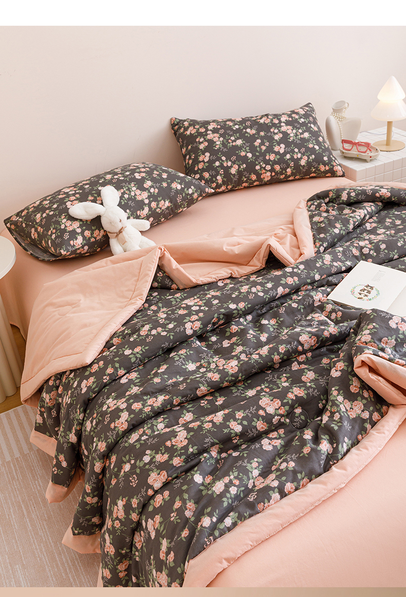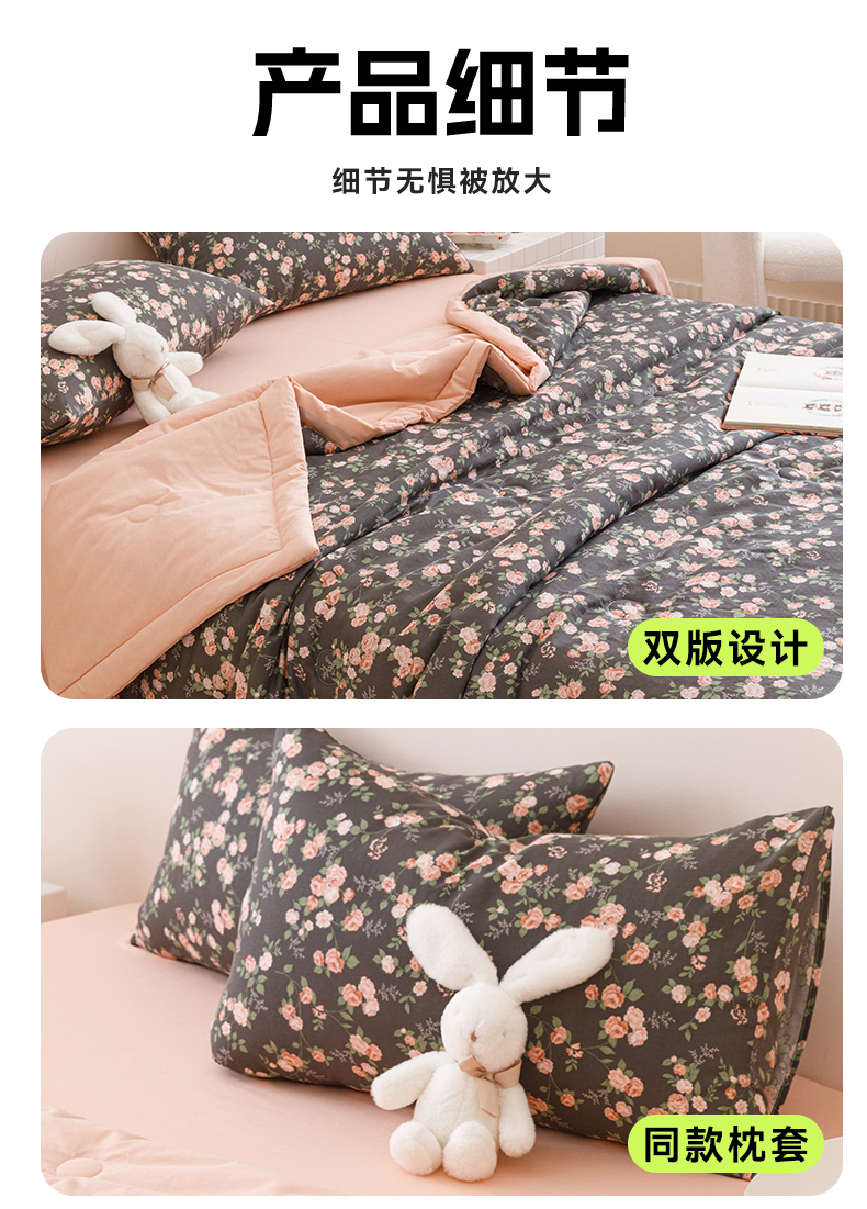 • 91家纺网 家纺一手货源 找家纺 2025新款全棉双层纱夏被 被子被芯 樱花草
