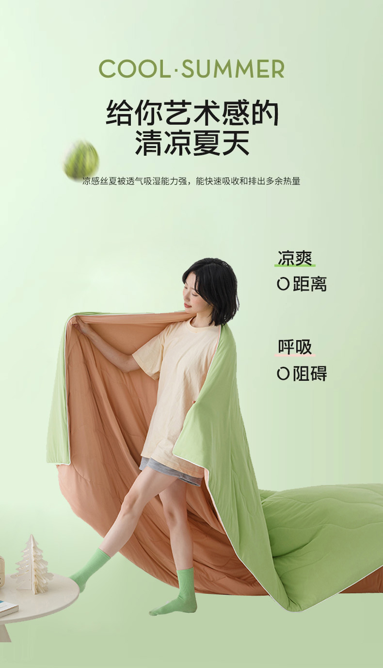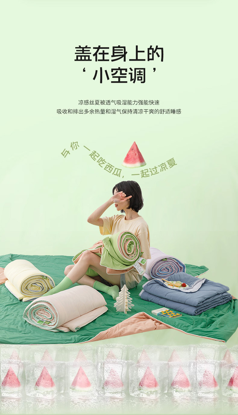 商品名称:眠博士 2025新款170g凉感瓜瓜夏被空调被 凉凉西瓜-浅绿拼红