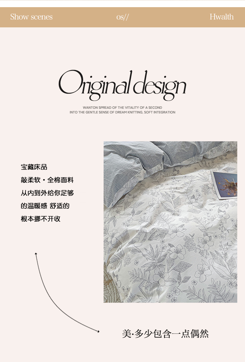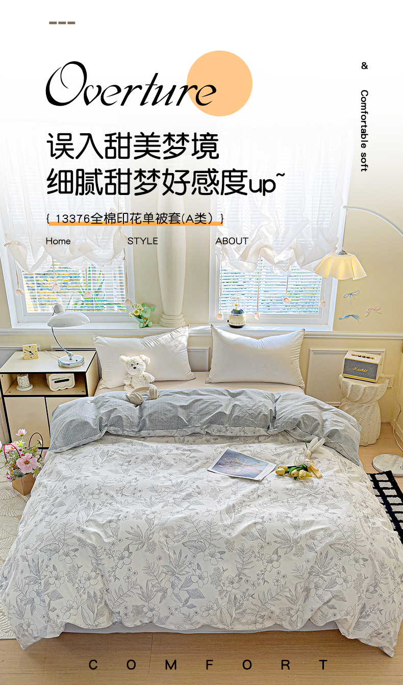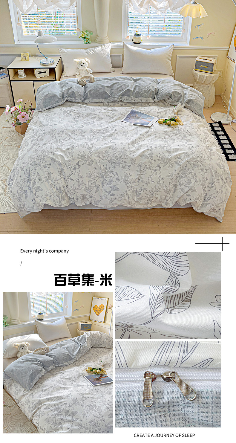 • 91家纺网 家纺一手货源 找家纺 大柏树 2025新款全棉13376印花四件套系列(可定制)-单被套百草集-米