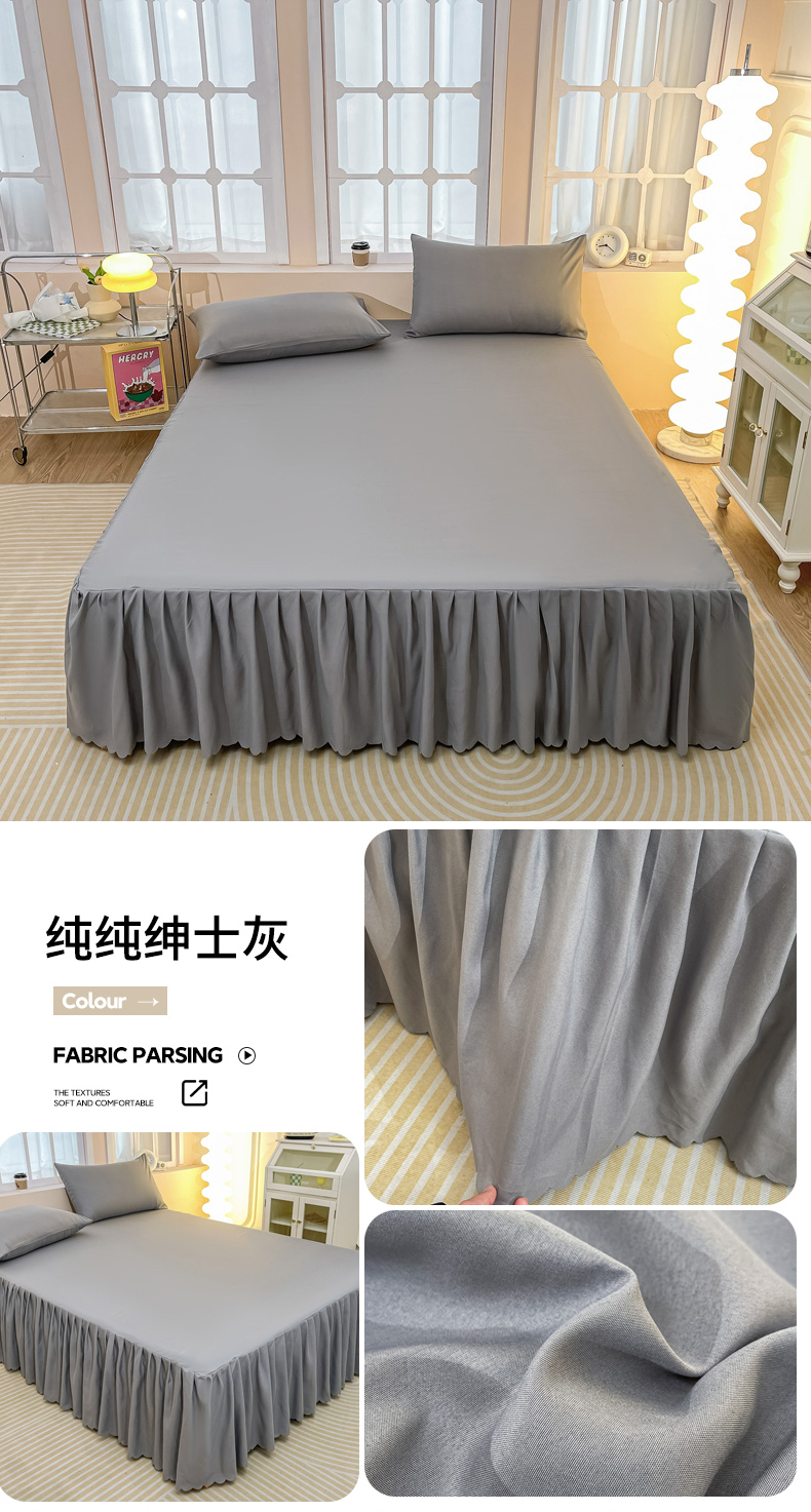 (总)莎臣豹 2025水洗磨毛纯色单品床裙可配二三件套,纯纯宝石蓝,纯纯丁香紫,纯纯豆绿,纯纯高雅灰,纯纯公主粉,纯纯卡其,纯纯抹茶绿,纯纯嫩黄,纯纯绅士灰,纯纯天空蓝,纯纯甜豆沙,纯纯雾霾蓝,纯情白