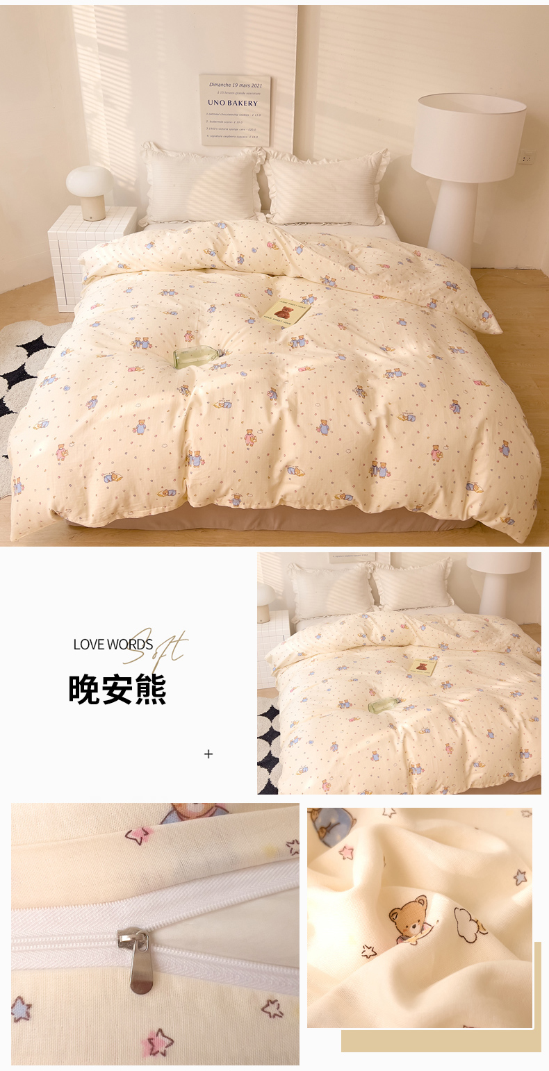 • 91家纺网 家纺一手货源 找家纺 DoDo 兜兜 2025新款全棉双层纱印花单被套(可定做尺寸) 晚安熊
