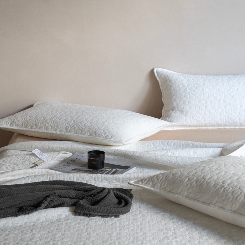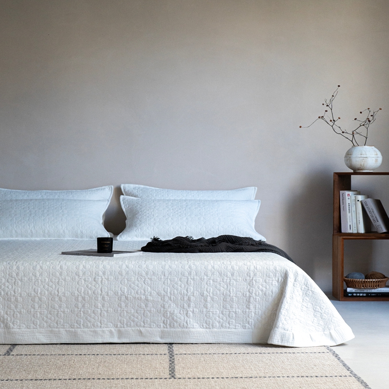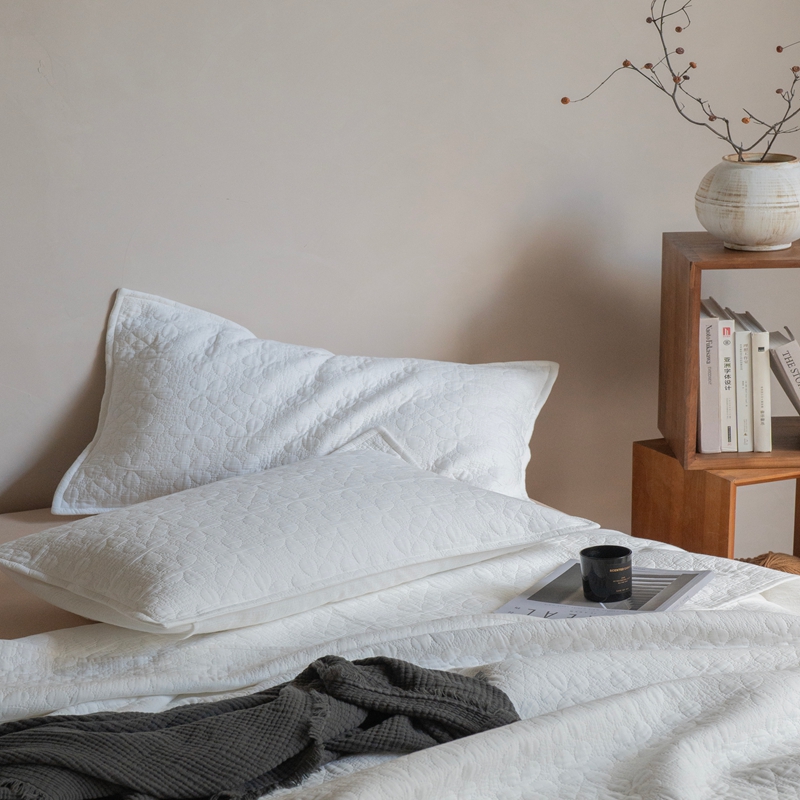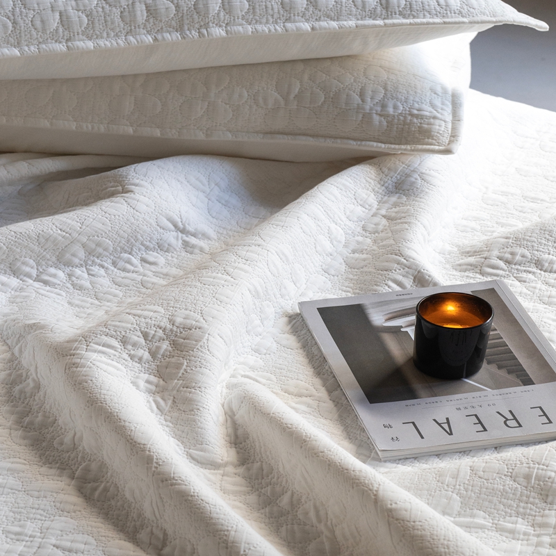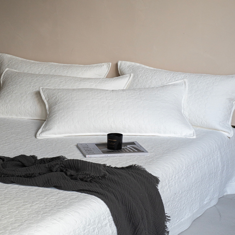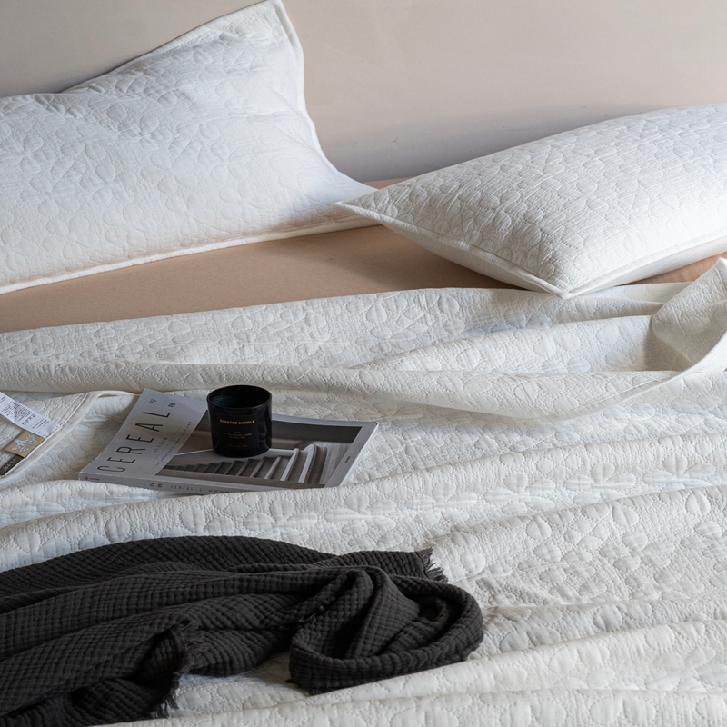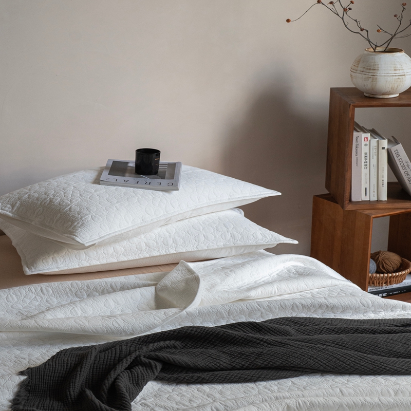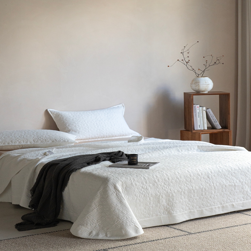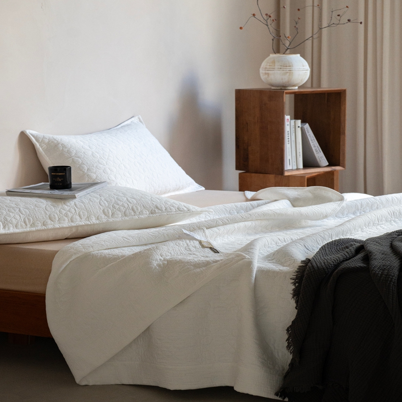 (总)璞素2025新款全棉色织三层纱床盖三件套-落雪