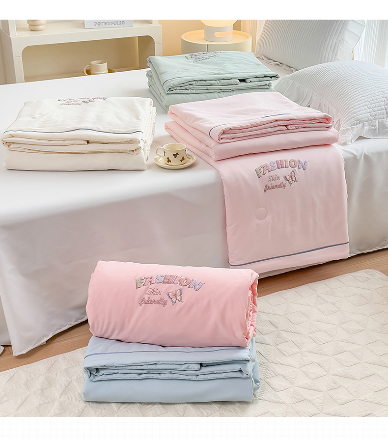 (总)金麦家纺 2025新款冰丝绣花四件套-心愿系列,心愿粉色,心愿燕麦奶,心愿天空蓝,心愿淡雅绿,心愿浅灰
