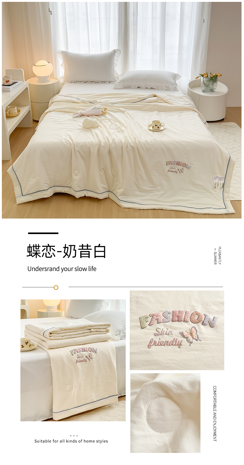 商品名称:金麦家纺 2025新款针织双层纱夏被 蝶恋-山茶粉