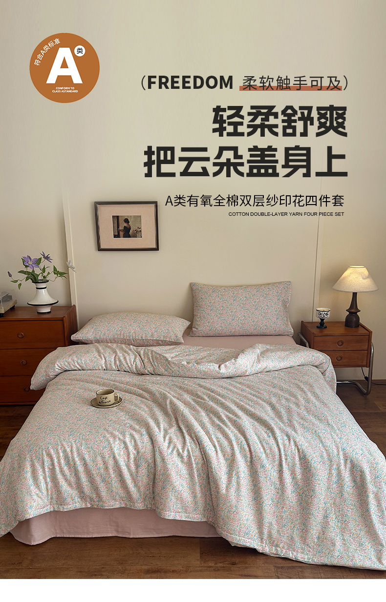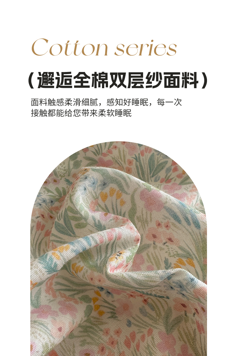 当前位置: 91家纺网 > 商品网购 > 床品套件 > 四件套 > 双层纱四件套 > 亿梵家居 2025新款A类母婴级有氧全棉纯棉双层纱纯棉印花四件套-床拍图 蕾拉花园