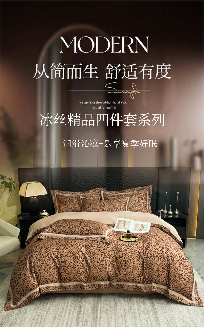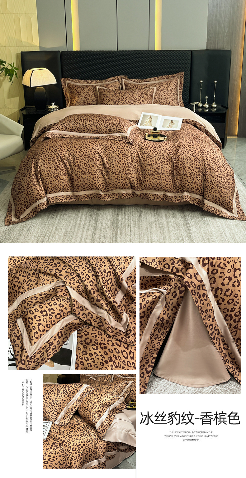 (总)金麦家纺 2025新款精品冰丝四件套,冰丝豹纹-香槟色,冰丝豹纹-蓝,冰丝豹纹-橙,冰丝豹纹-粉