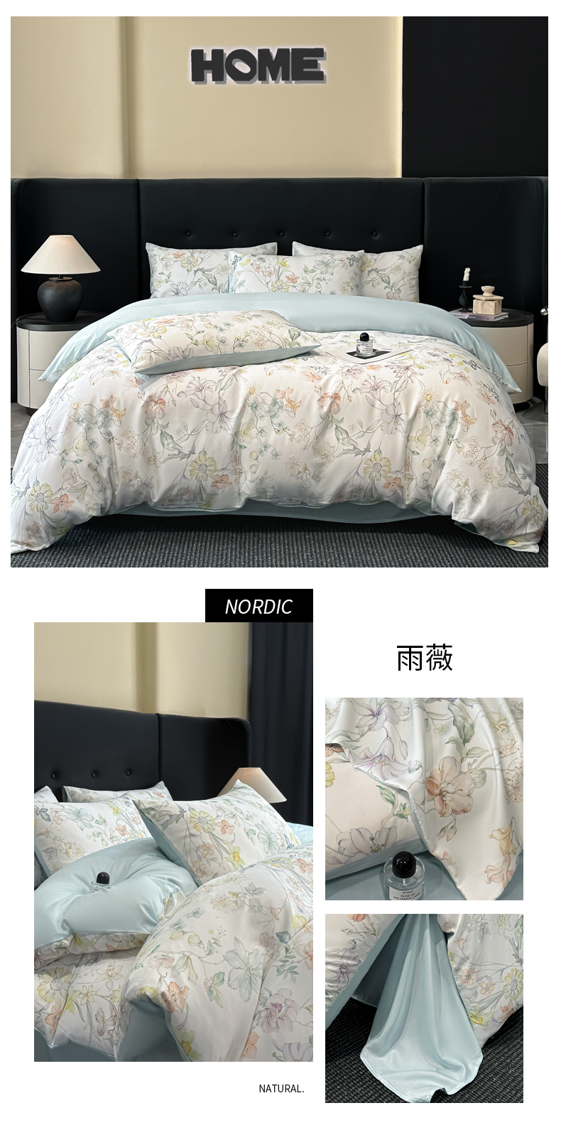商品名称:慕晨 2025春夏新品莱赛尔天丝数码印花四件套莱赛尔夏被四件套天丝夏凉被直播热款 雨薇