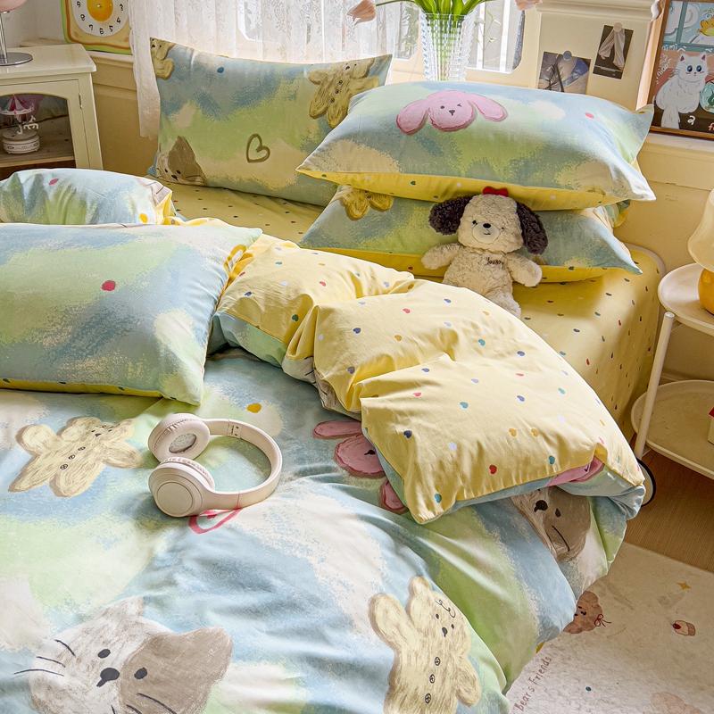(总)麦朵家居 2025新款全棉简约款四件套,动物乐园,快乐生活,萌宠宝贝,宁静小兔,甜美的梦,维尼小熊,油彩画