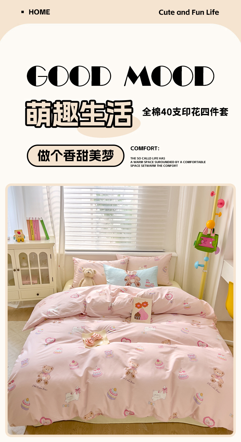 当前位置: 91家纺网 > 商品网购 > 床品套件 > 四件套 > 全棉普通四件套 > DoDo兜兜2025新款40支13372全棉印花四件套 快乐甜品