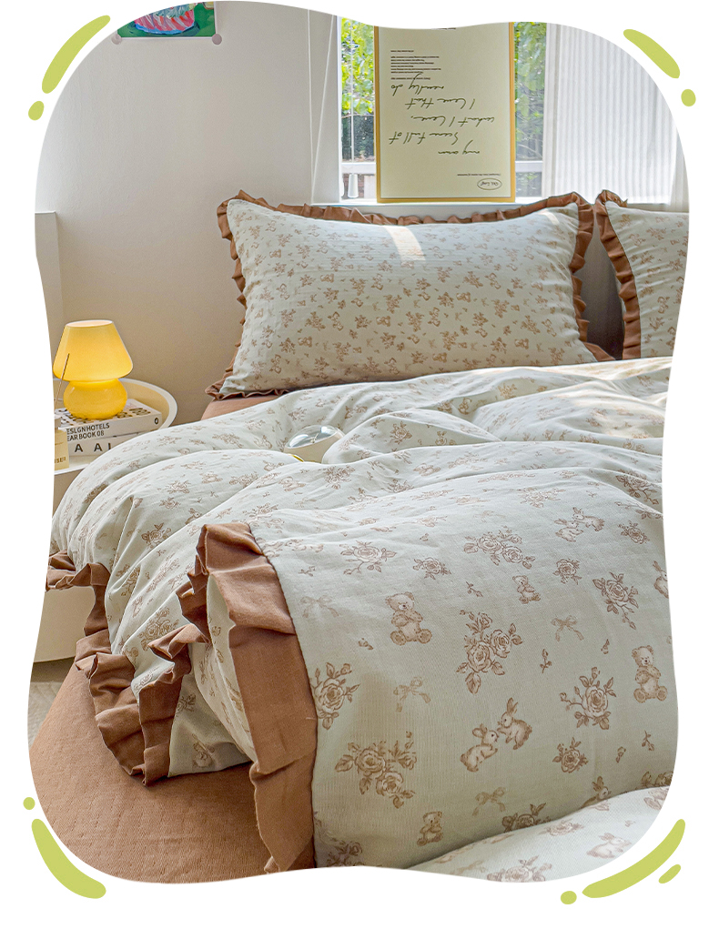 (总)忆生活家纺 2025新款韩版全棉花边四件套,花边款艾莉娜,花边款豹纹小熊,花边款杜若,花边款哈皮园,花边款花希,花边款桑梓绿,花边款藤蔓兔,花边款仙草,花边款香韵-粉,花边款香韵-兰