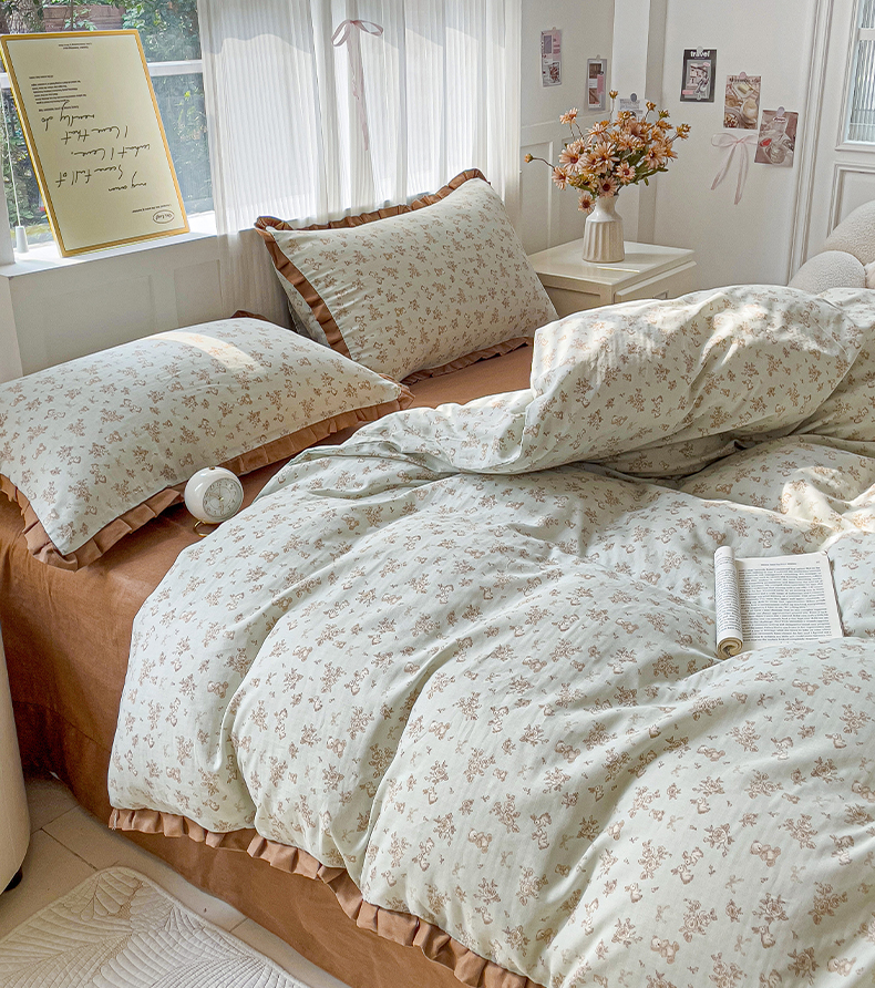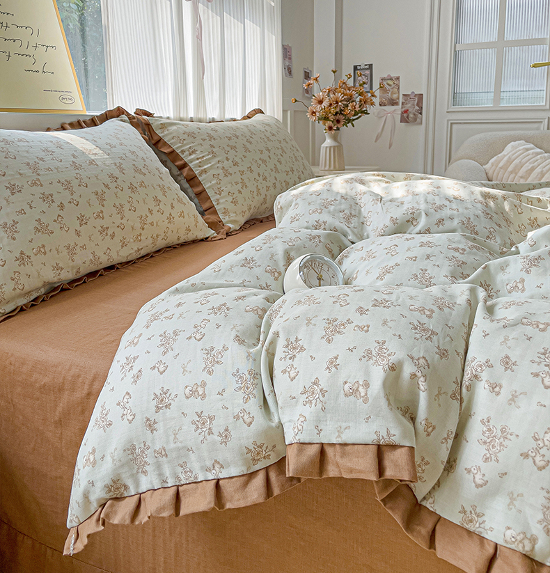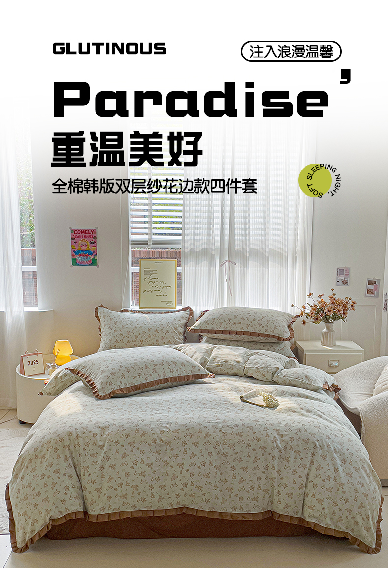 忆生活家纺 2025新款全棉韩版双层纱花边款四件套 半亩花田
