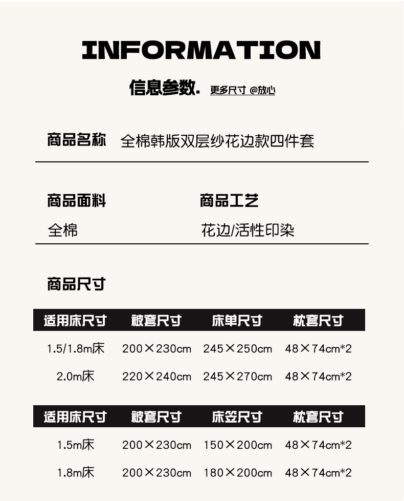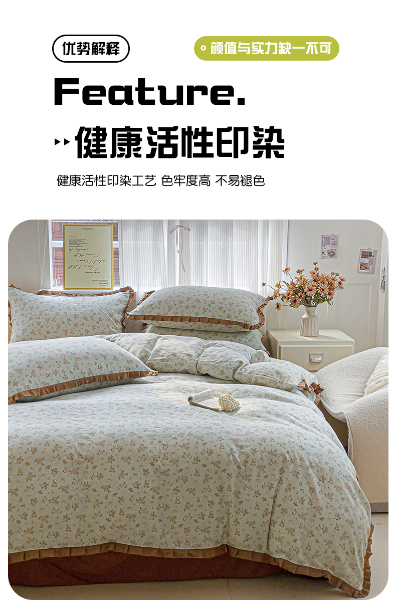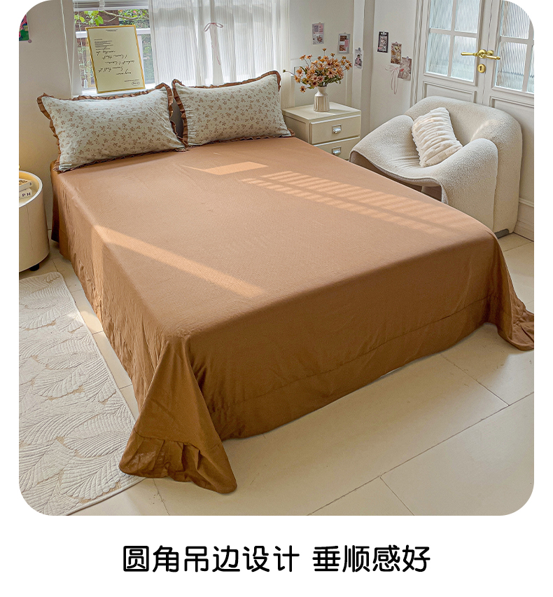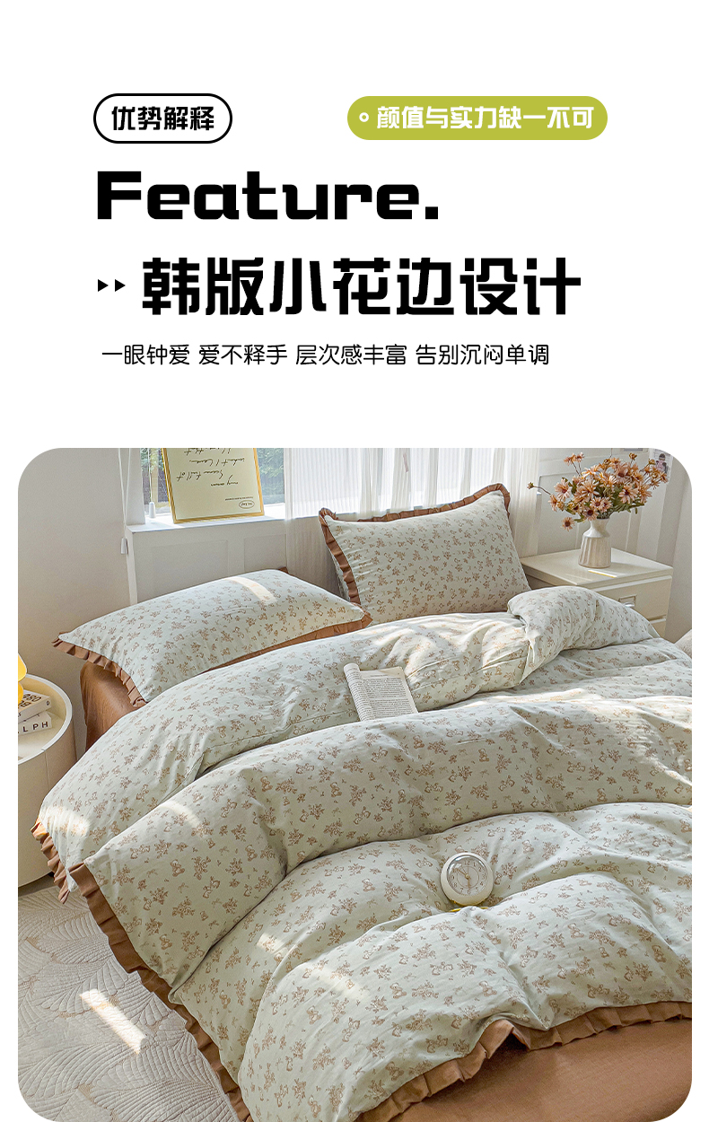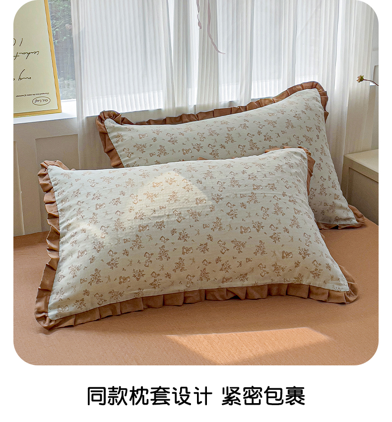 商品名称:忆生活家纺 2025新款全棉韩版双层纱花边款四件套 半亩花田