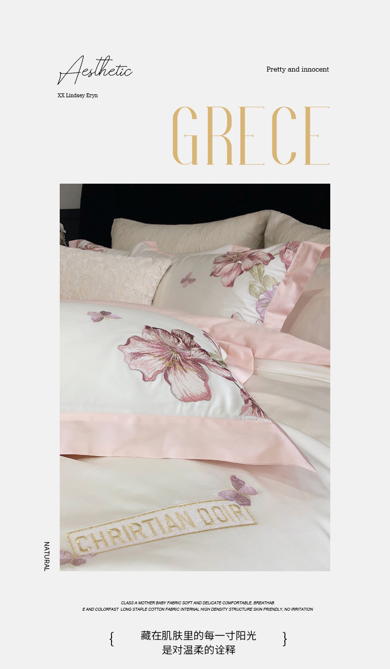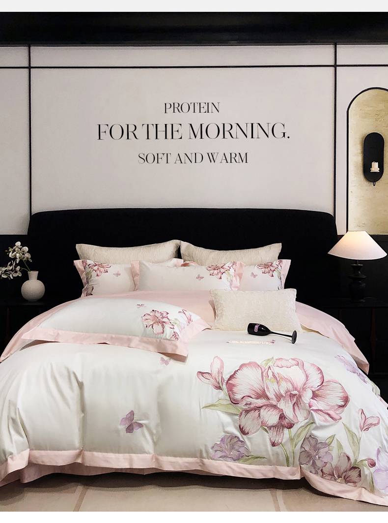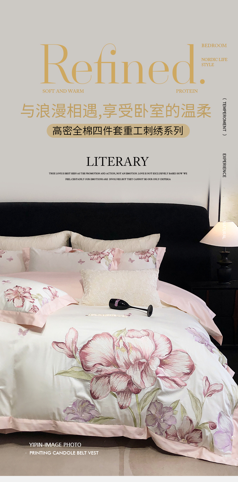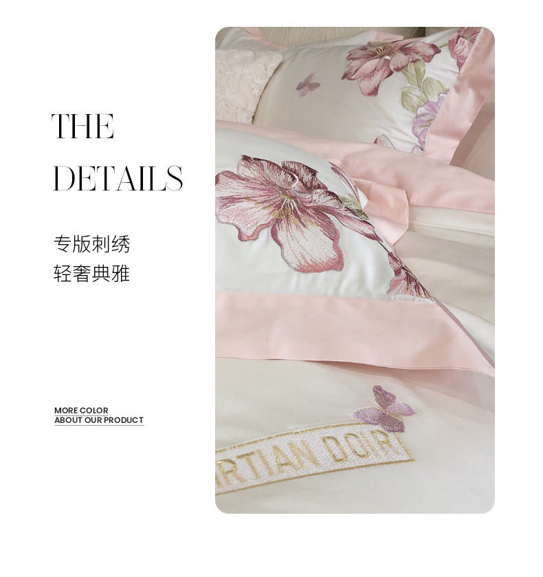商品名称:2025新款全棉50s绣花刺绣款四件套 雯棠-粉