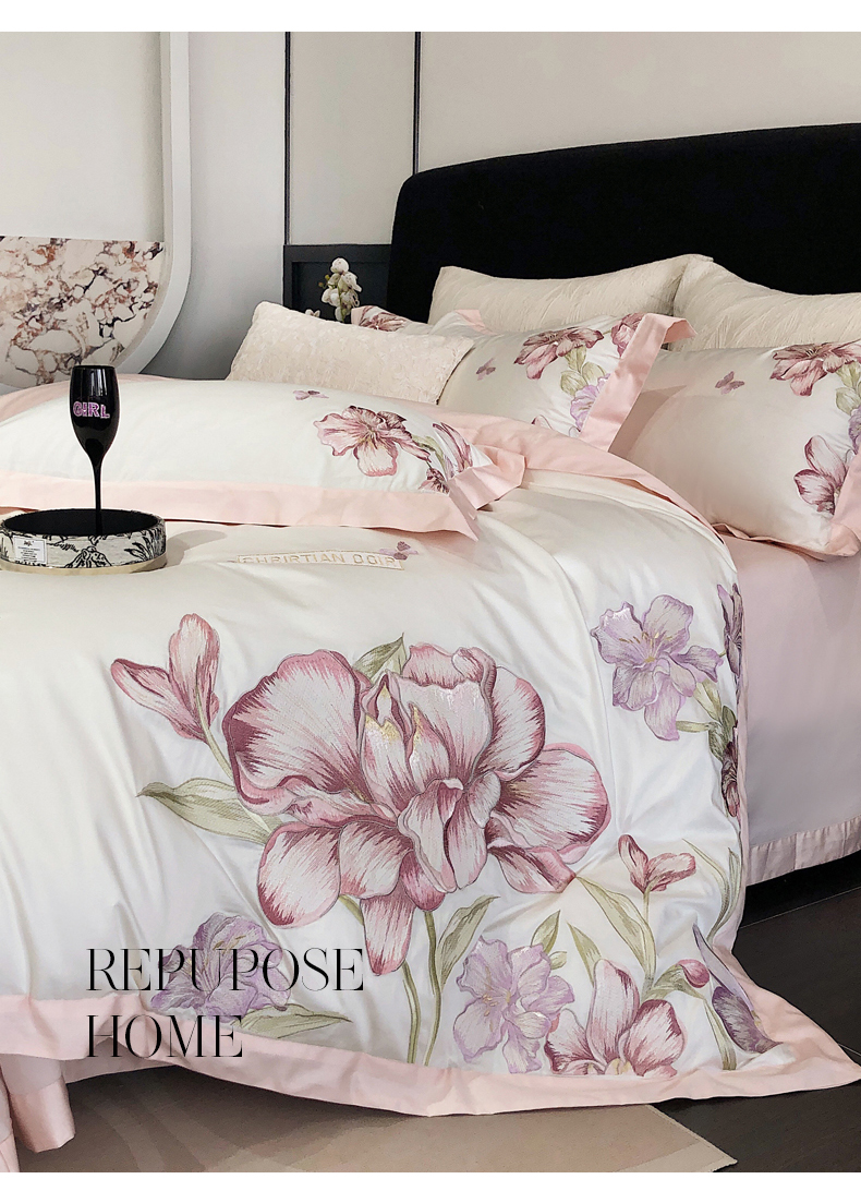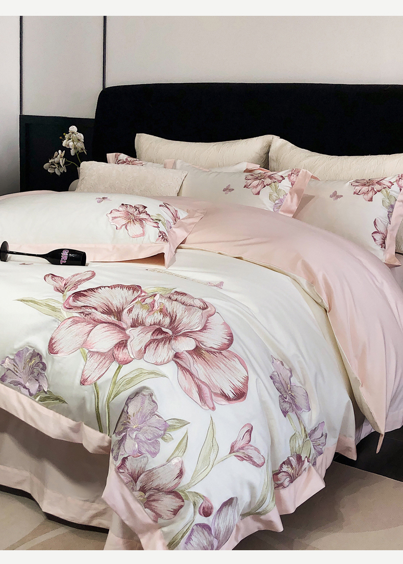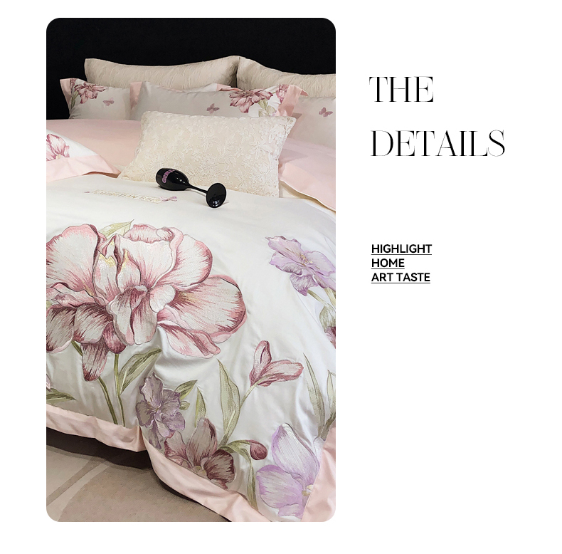 2025新款全棉50s绣花刺绣款四件套 雯棠-粉