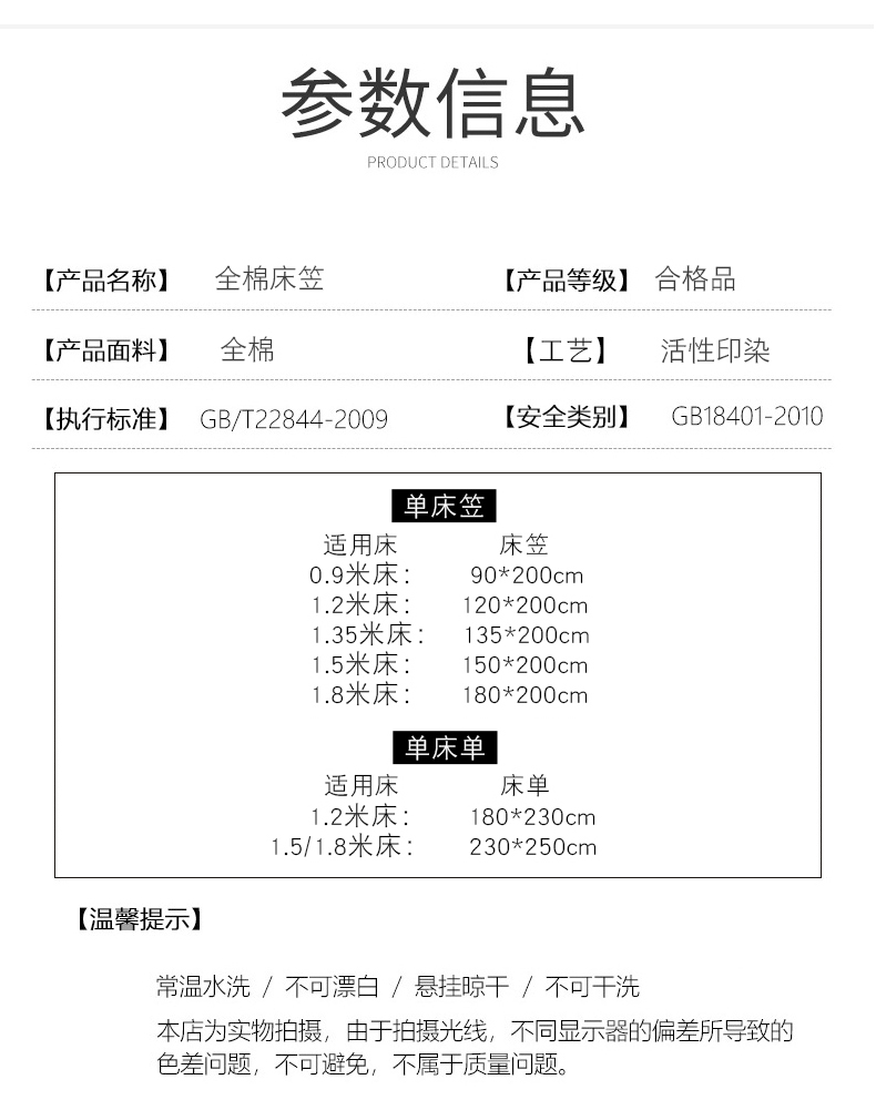 135*200cm 单床笠 | ¥50.00 |