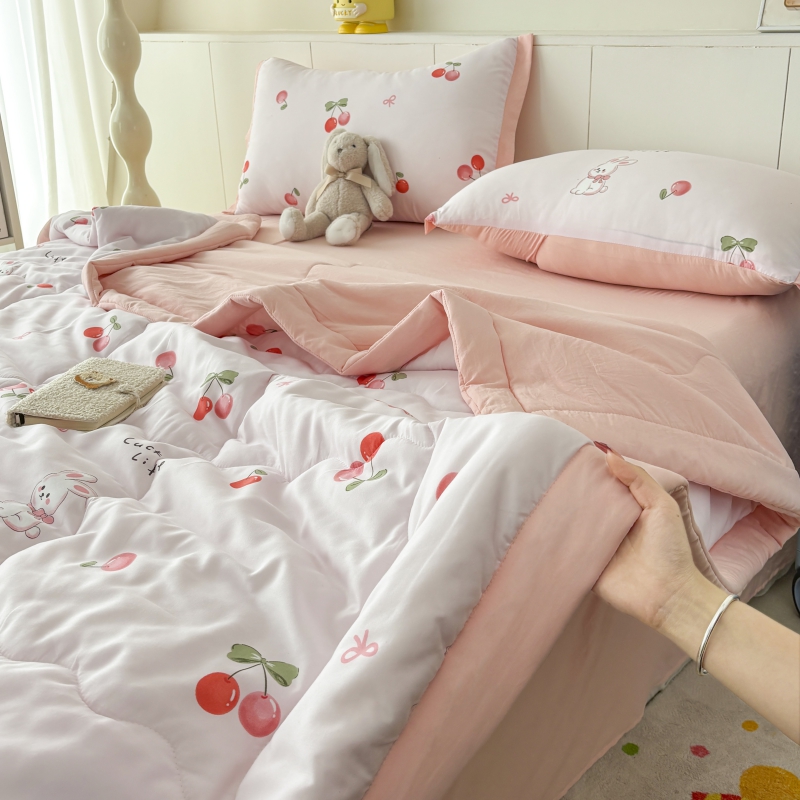 商品名称:梦舒羽2025新款小清新系列水洗棉夏被 缦粉樱桃