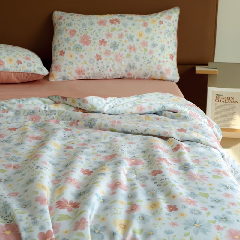 (总)朵美 2025新款50支天丝印花夏被+夏被四件套