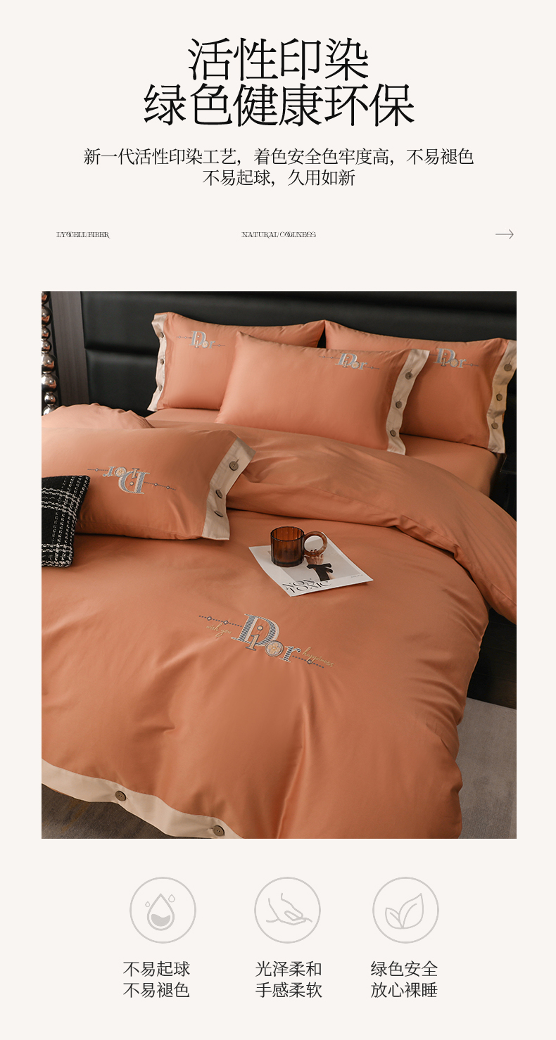 商品名称:暖洋 2025新款100支长绒棉绣花纽扣款四件套长绒棉四件套全棉四件套【礼盒包装】 暖桔