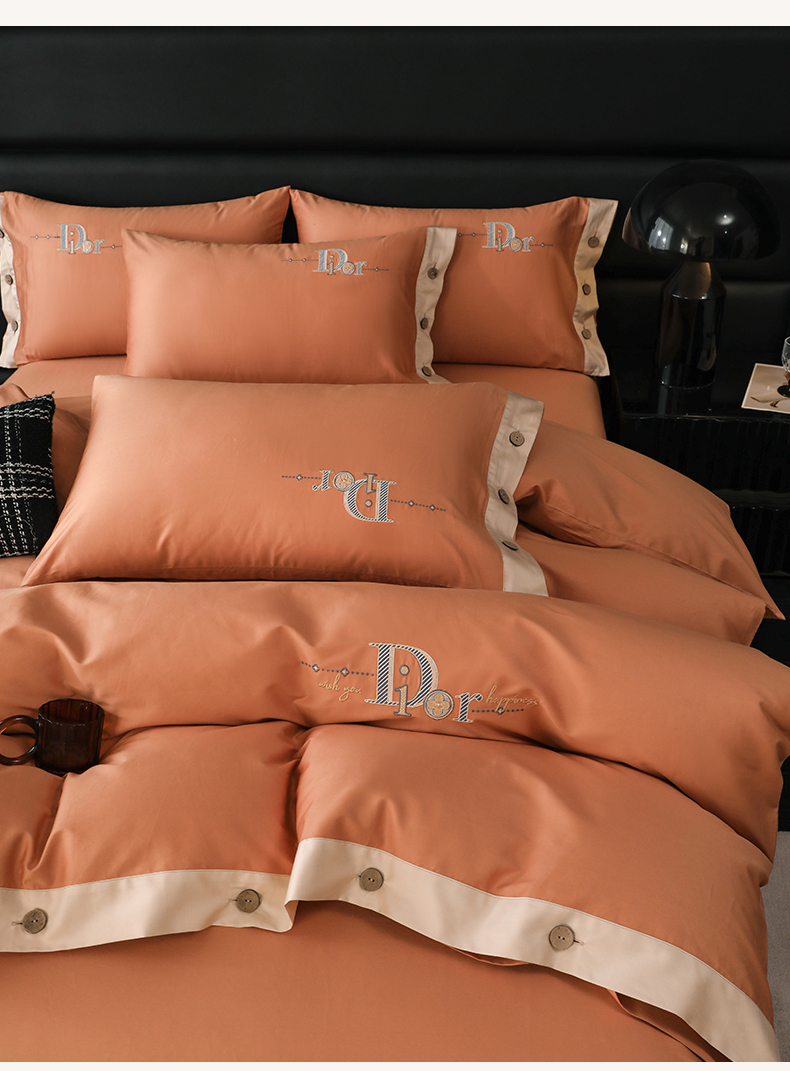 暖洋 2025新款100支长绒棉绣花纽扣款四件套长绒棉四件套全棉四件套【礼盒包装】 暖桔