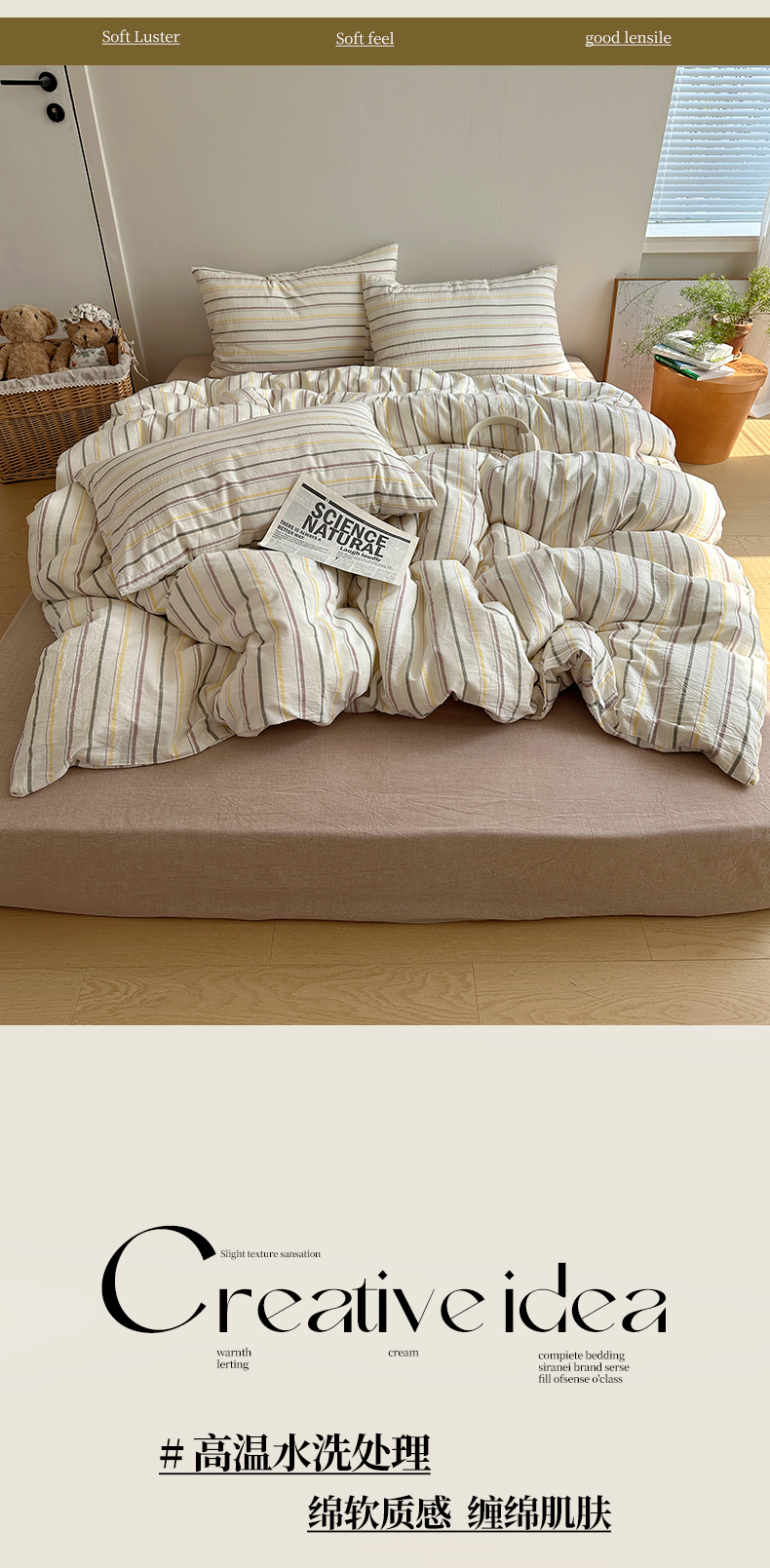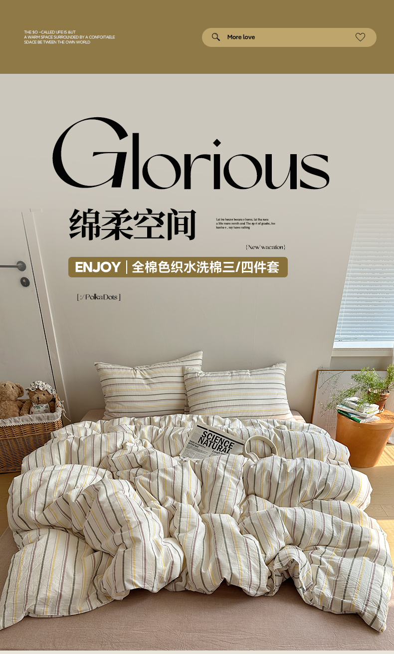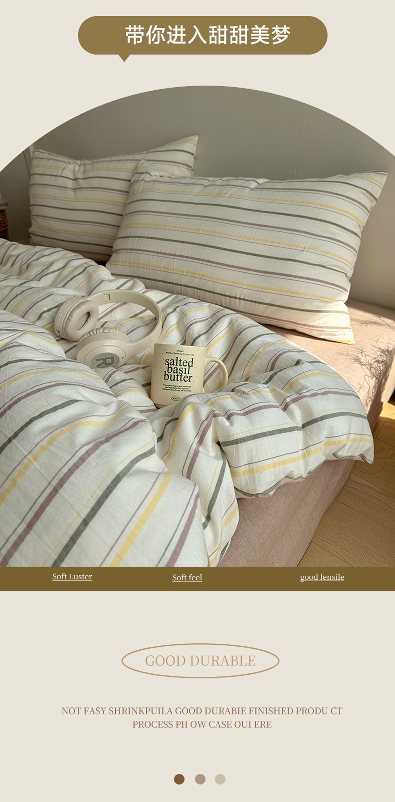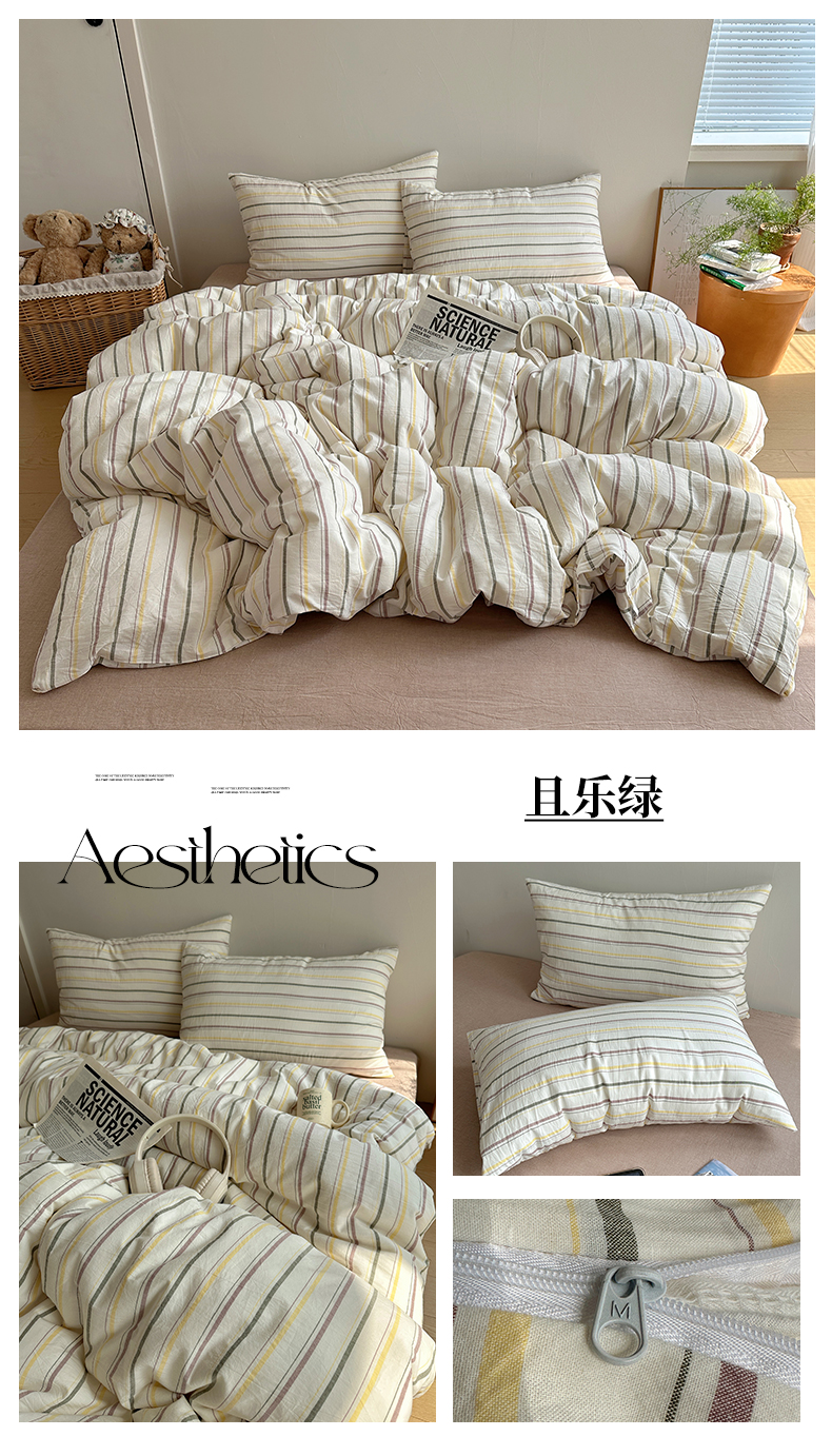 当前位置: 91家纺网 > 商品网购 > 床品套件 > 四件套 > 水洗棉四件套 > 艾咪-Amy ntmy 2025新款条纹款全棉色织水洗棉四件套 且乐绿