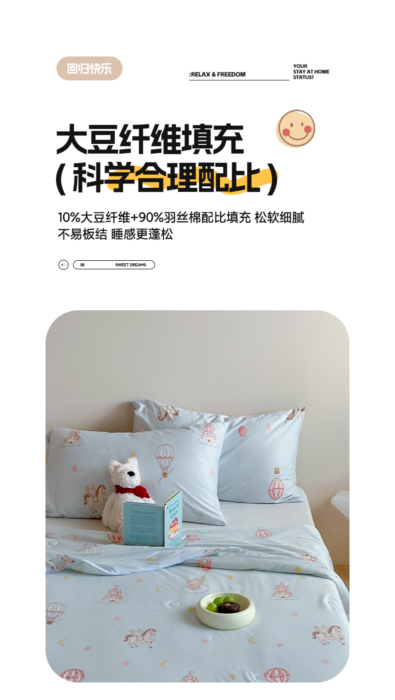商品名称:一加一 2025A类牛奶丝针织棉印花大豆夏被 梦幻城堡