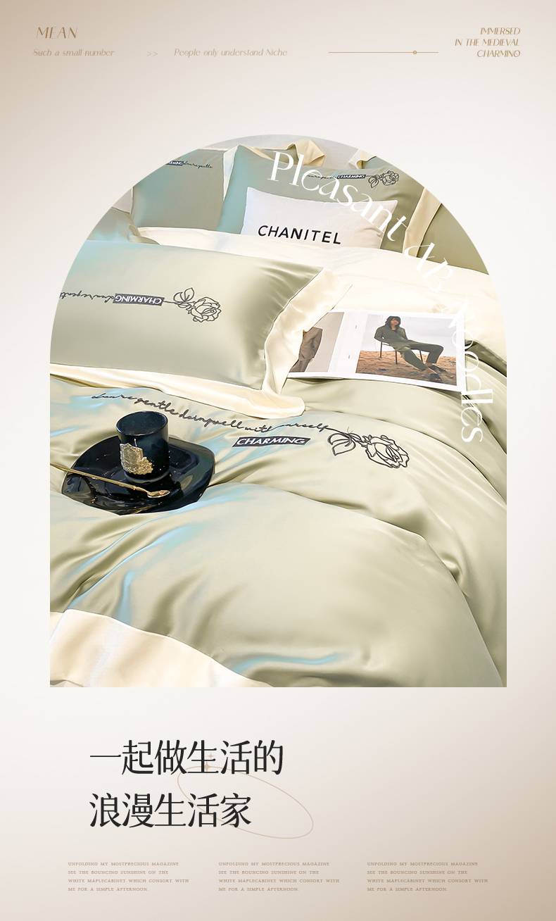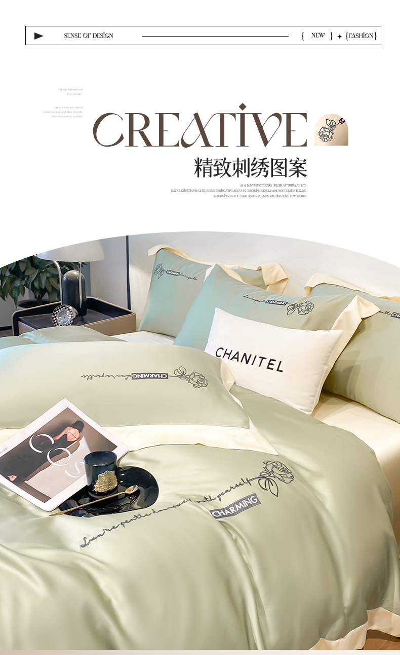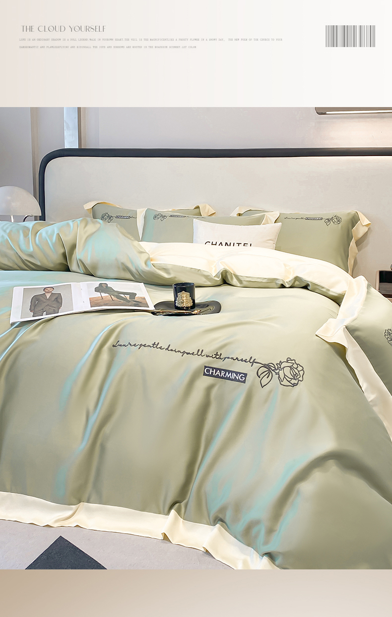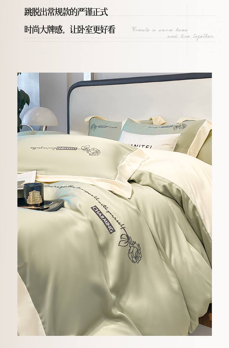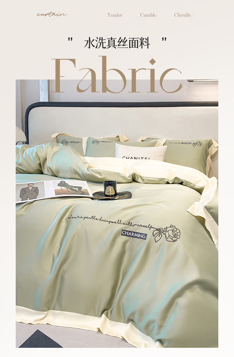 商品名称:2025春季新款亲肤水洗真丝刺绣四件套-罗伊莎 浅绿-奶盖