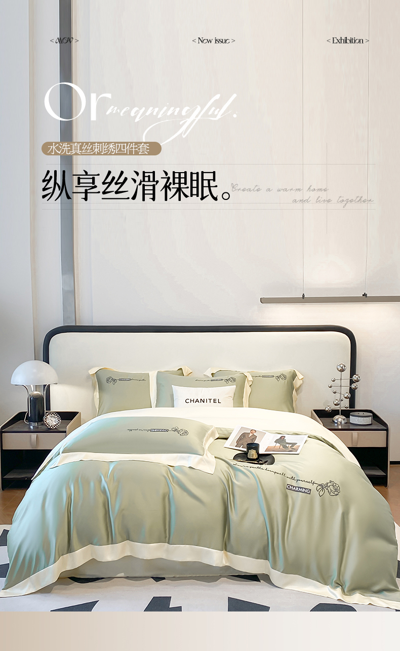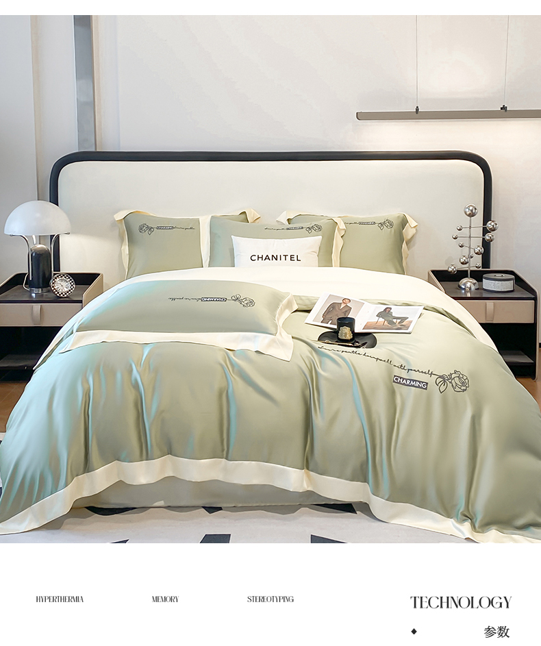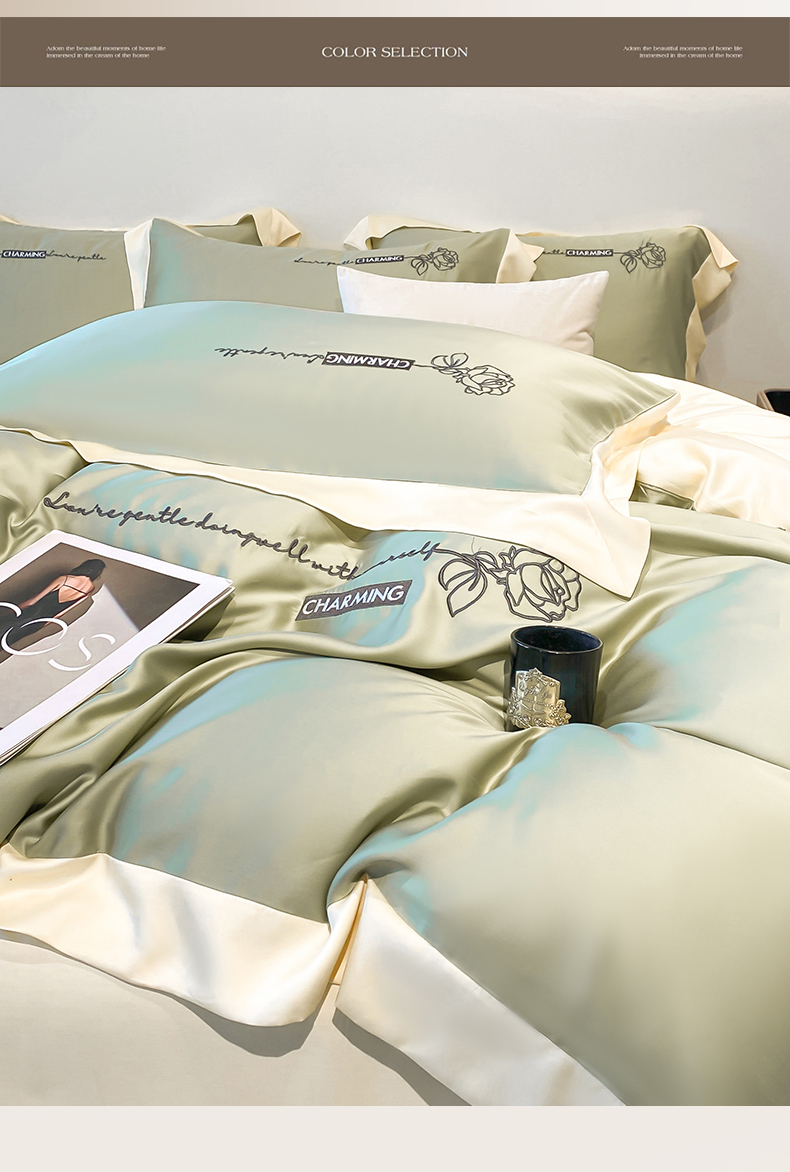 2025春季新款亲肤水洗真丝刺绣四件套-罗伊莎 浅绿-奶盖