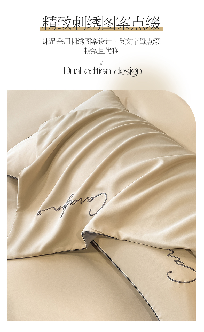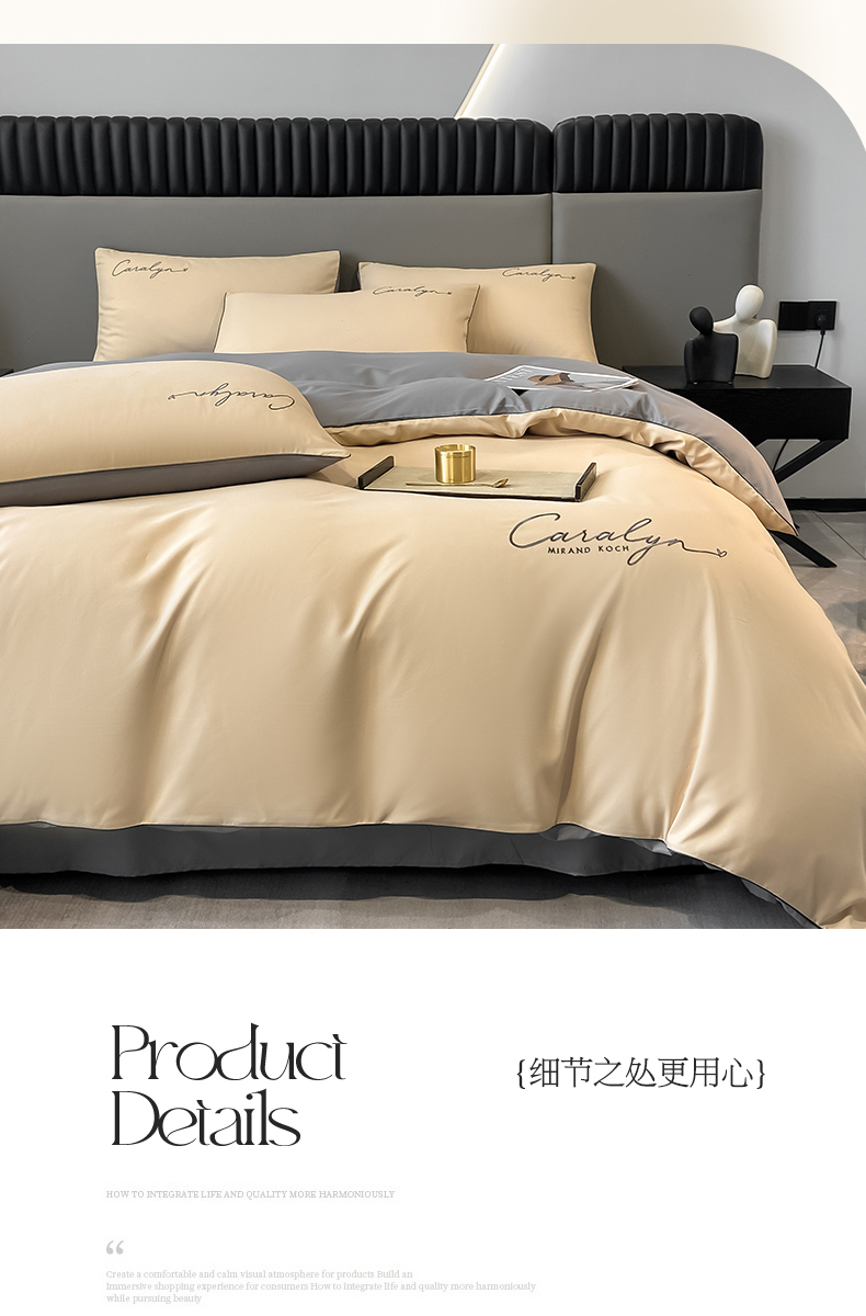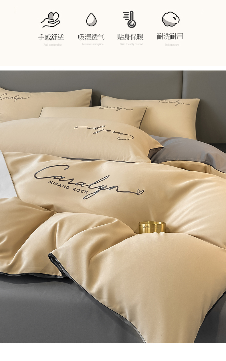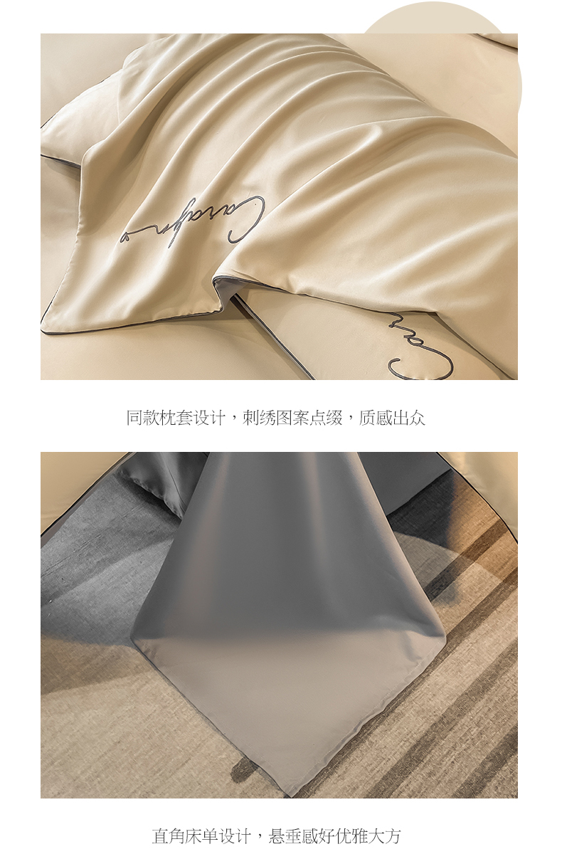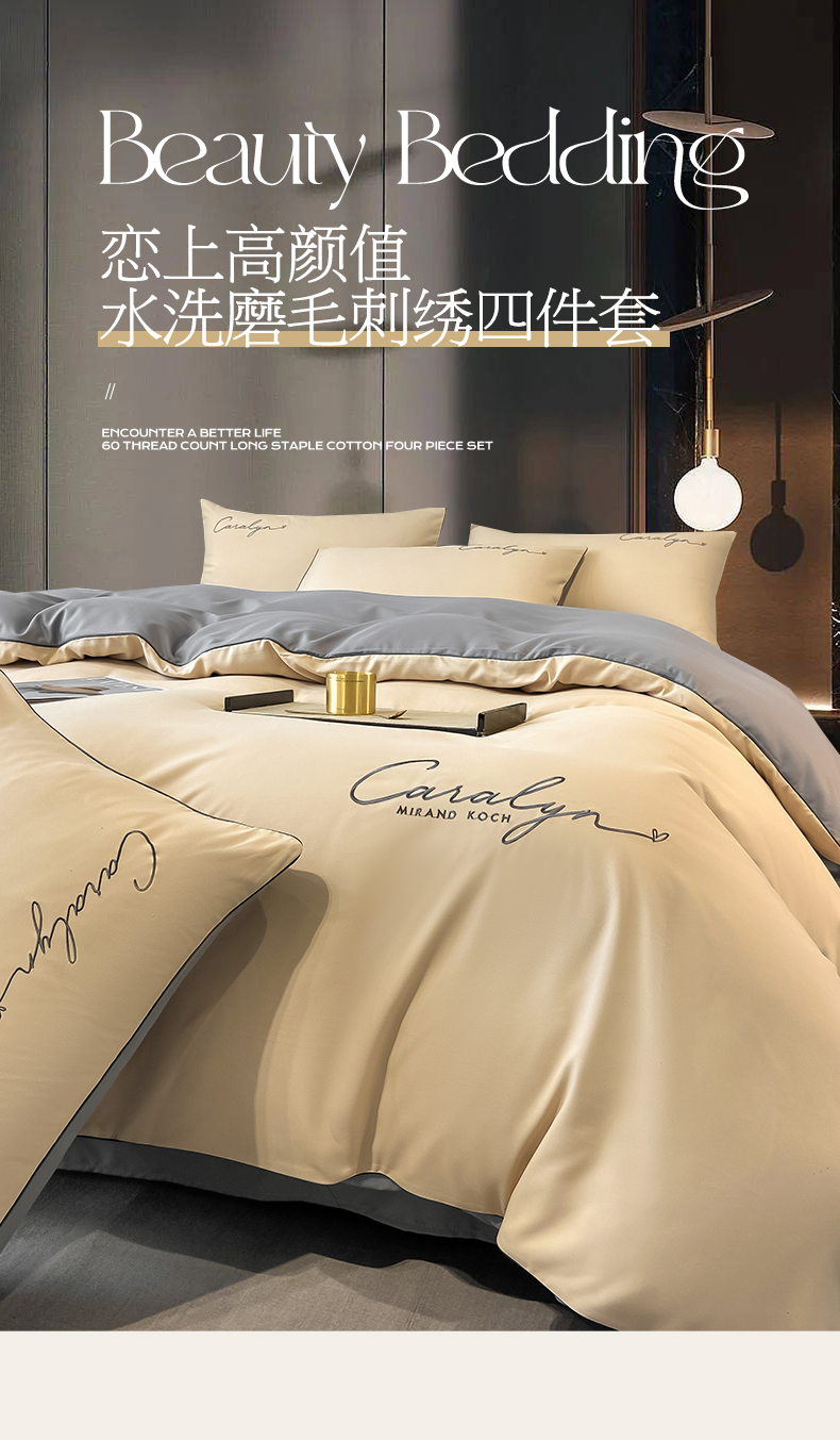 商品名称:2025新款水洗磨毛刺绣四件套-慕斯 奶茶色+中灰