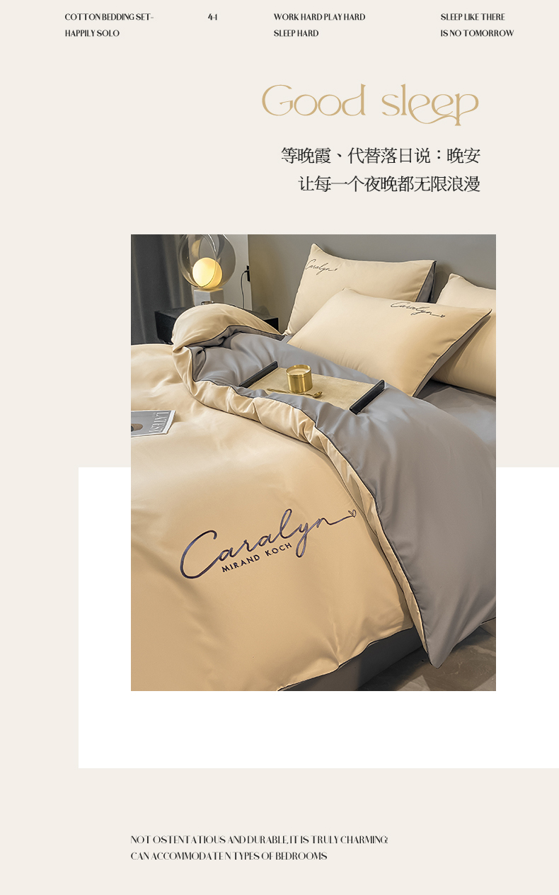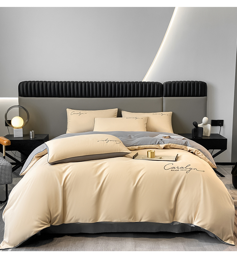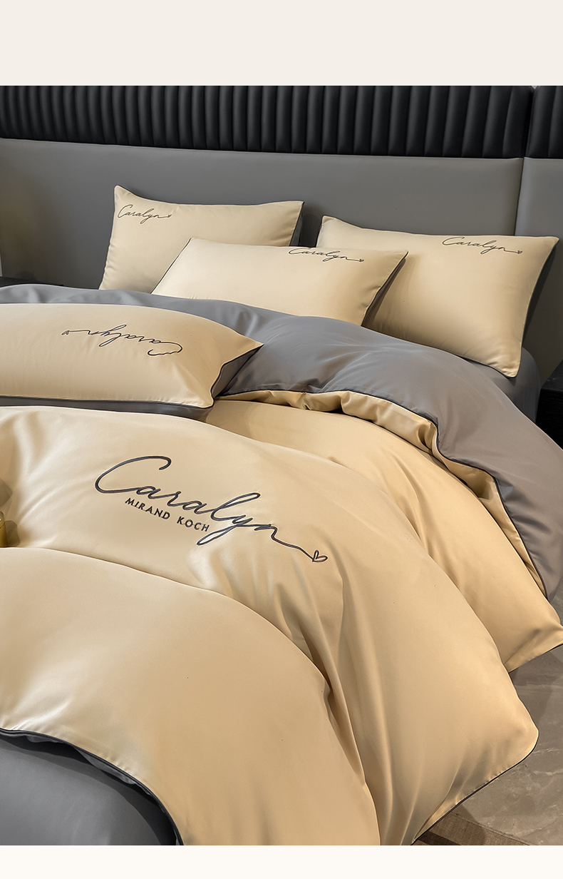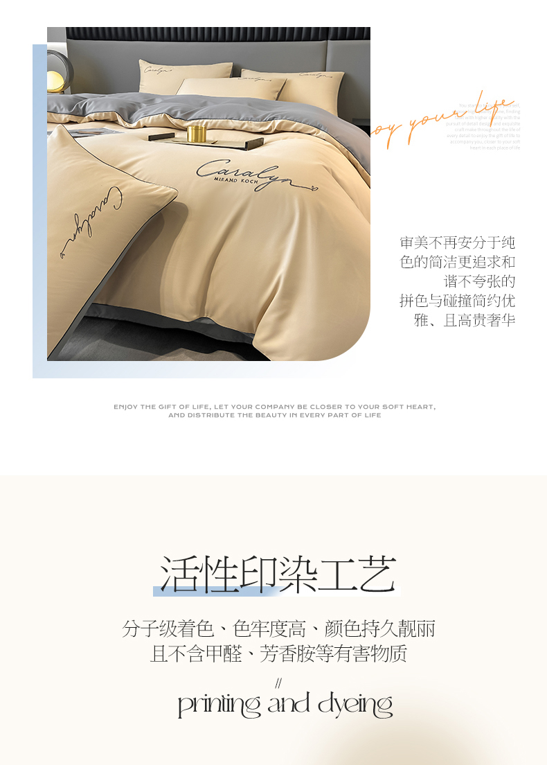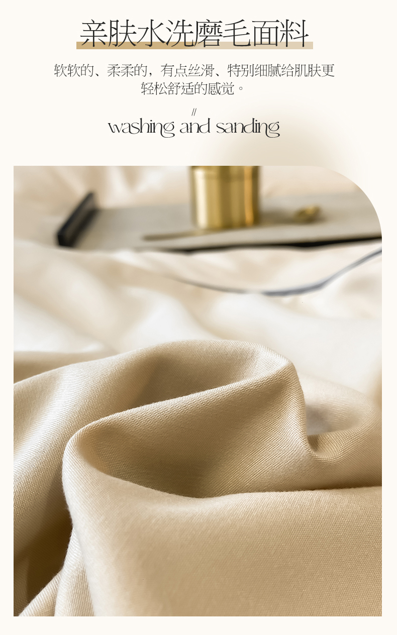 商品名称:2025新款水洗磨毛刺绣四件套-慕斯 奶茶色+中灰