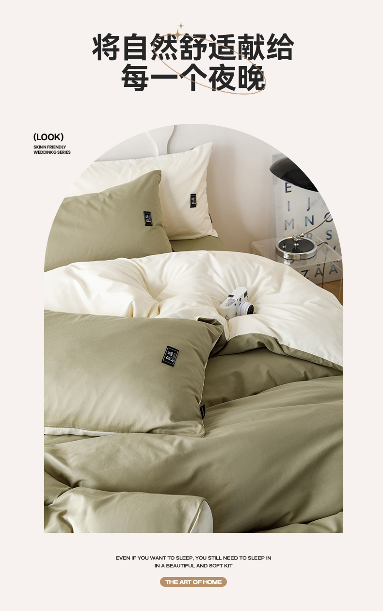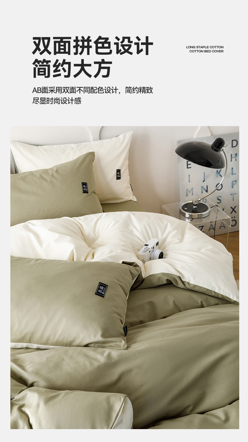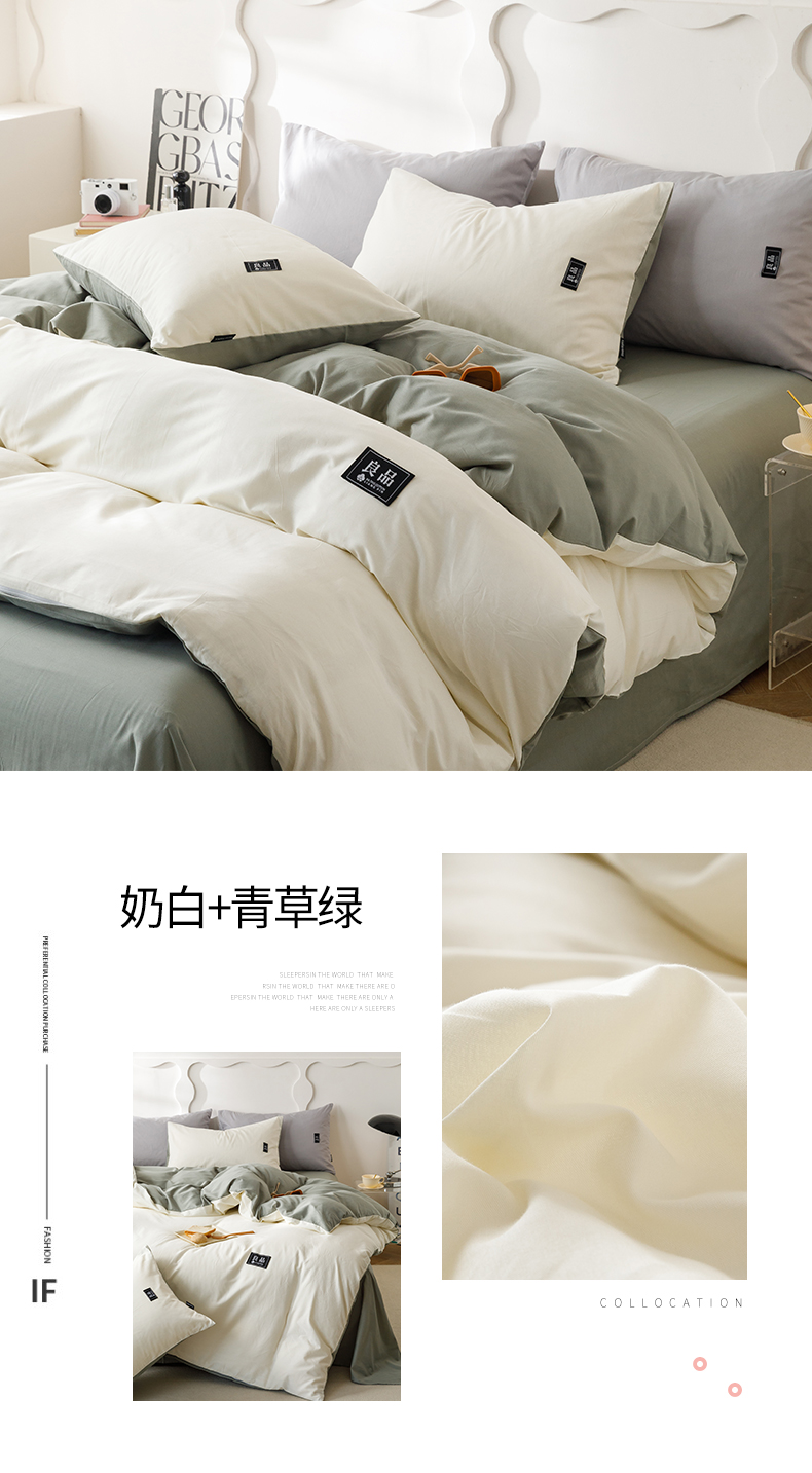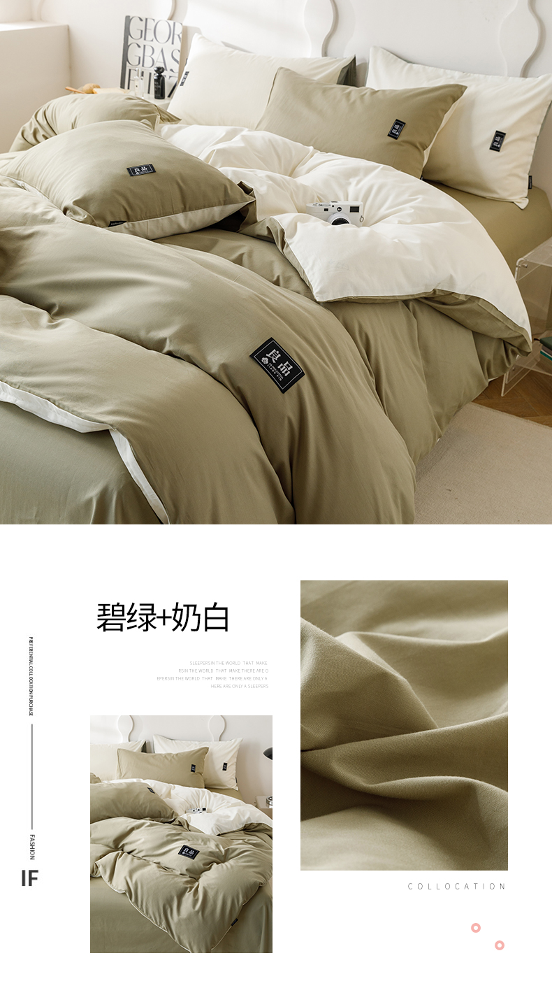 (总)798家纺 2025新款全棉双拼纯色良品四件套,碧绿+奶白,布鲁蓝+梧桐灰,豆绿+芍药粉,奶白+豆绿,奶白+青草绿,浅夏紫+芍药粉,肉肉粉+班尼咖,肉肉粉+千夏紫,肉肉粉+小雏菊,石灰+梧桐灰