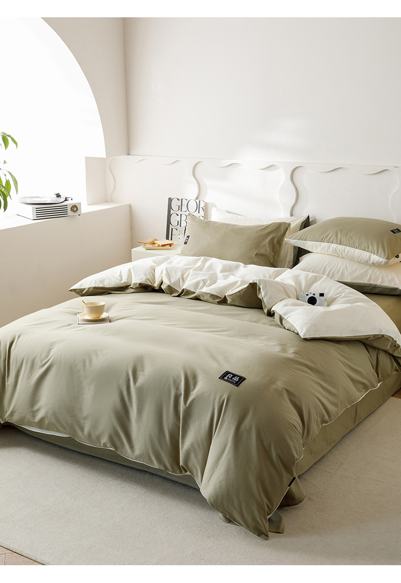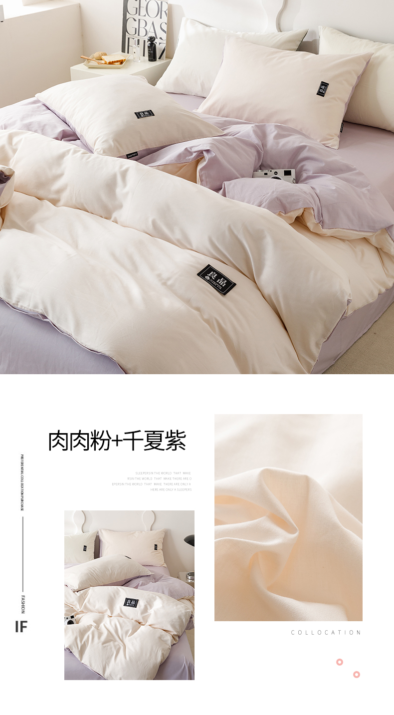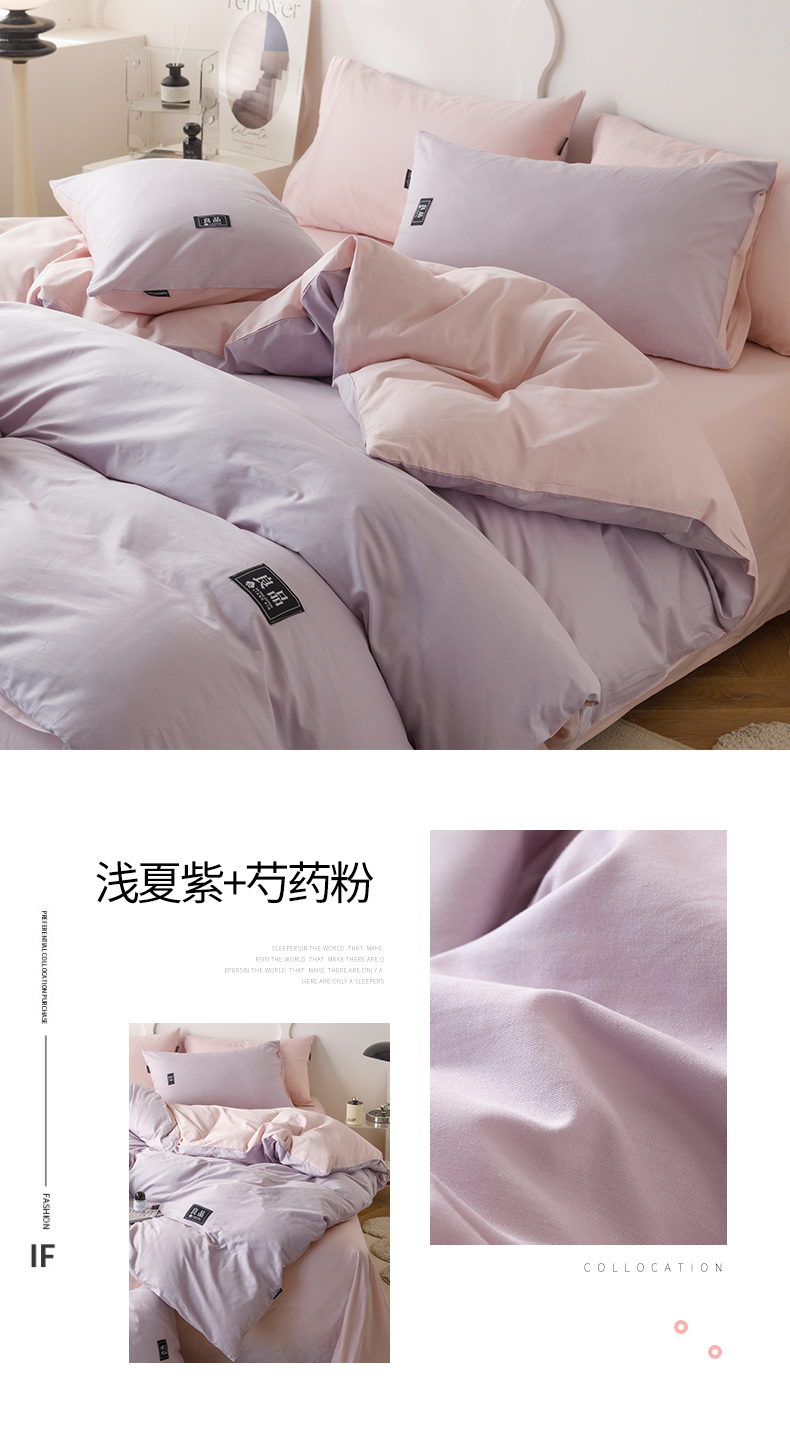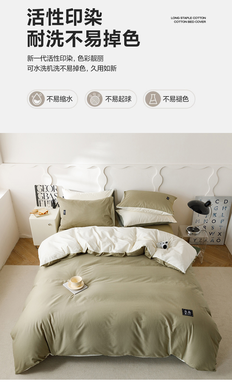 (总)798家纺 2025新款全棉双拼纯色良品四件套,碧绿+奶白,布鲁蓝+梧桐灰,豆绿+芍药粉,奶白+豆绿,奶白+青草绿,浅夏紫+芍药粉,肉肉粉+班尼咖,肉肉粉+千夏紫,肉肉粉+小雏菊,石灰+梧桐灰