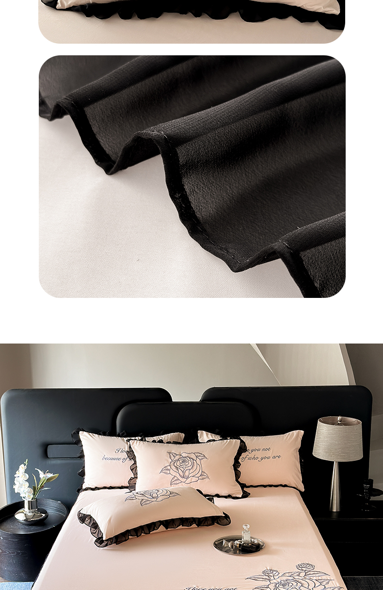 (总)豪美鑫 2025新款牛奶绒波点刺绣花边四件套-波尔卡系列,黑色波尔卡-卡其色,黑色波尔卡-奶白,黑色波尔卡-香槟色,红色波尔卡-卡其色,红色波尔卡-奶白,红色波尔卡-香槟色