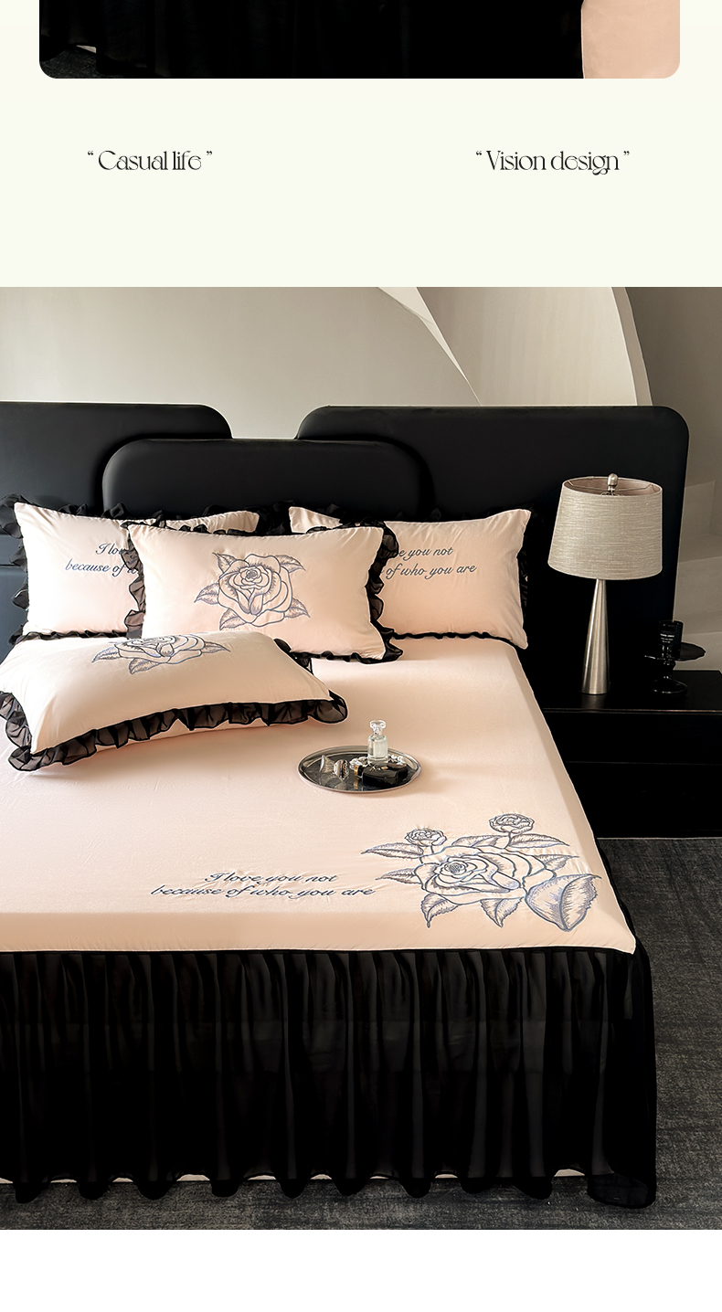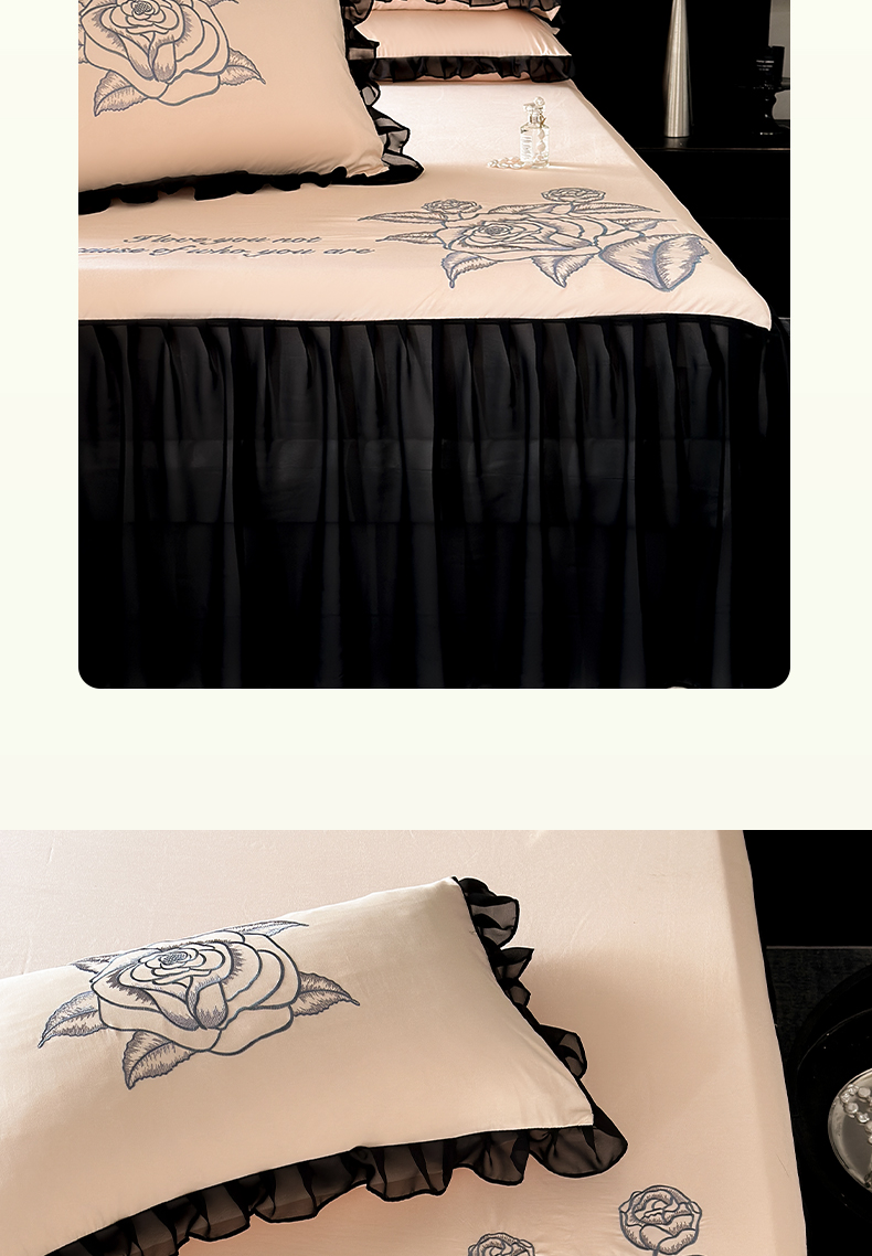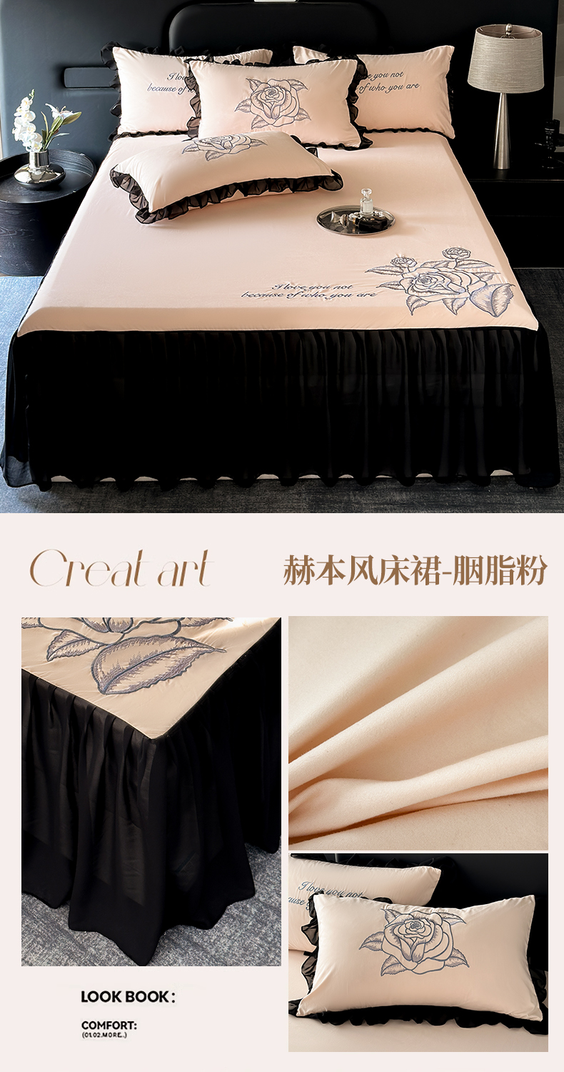 商品名称:豪美鑫 2025新款赫本风亲肤棉花边单床裙 赫本风床裙-胭脂粉