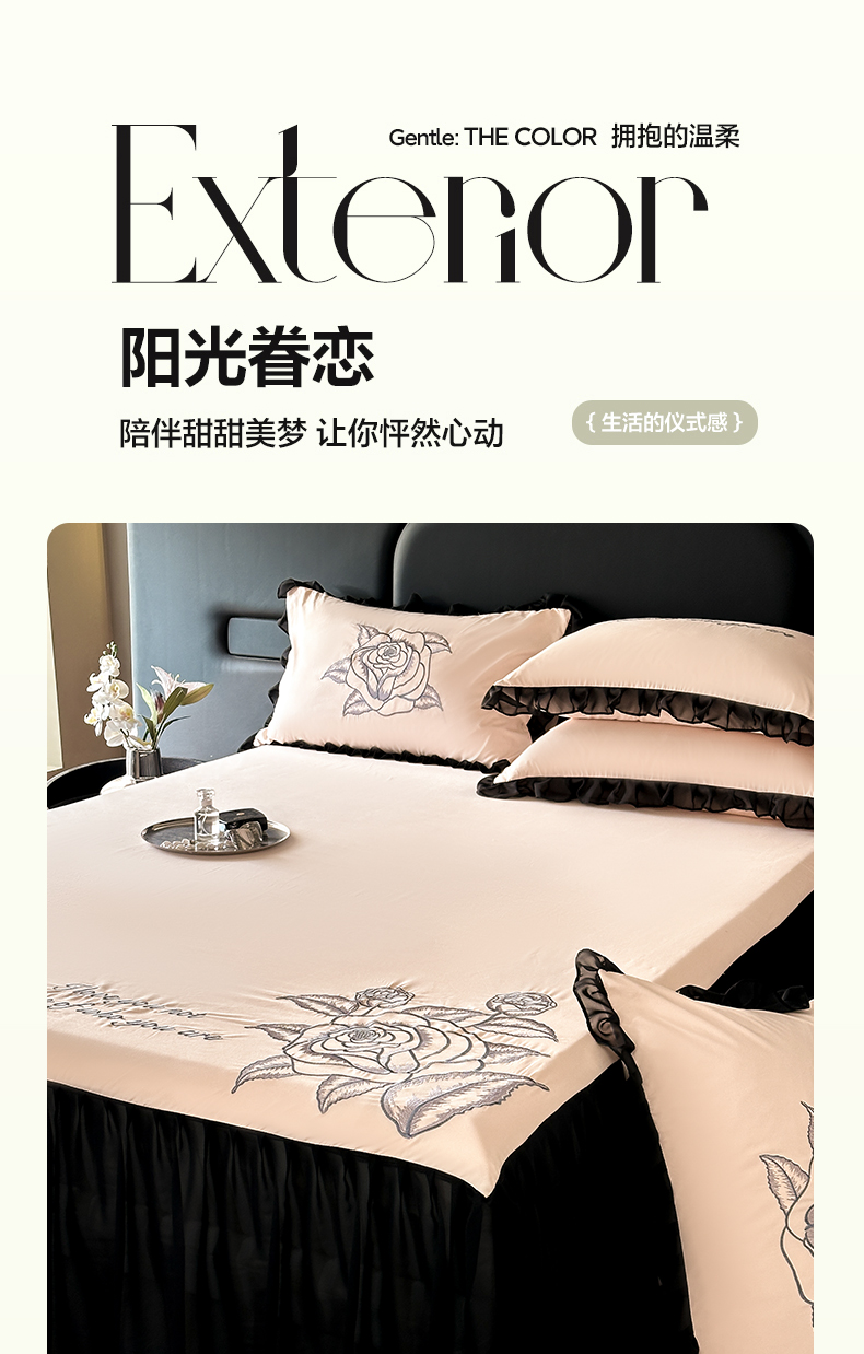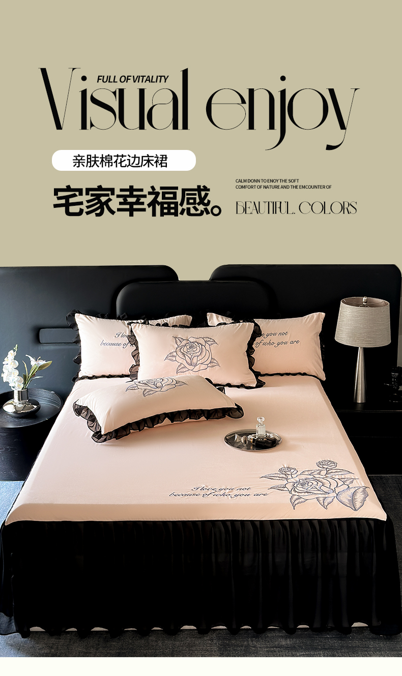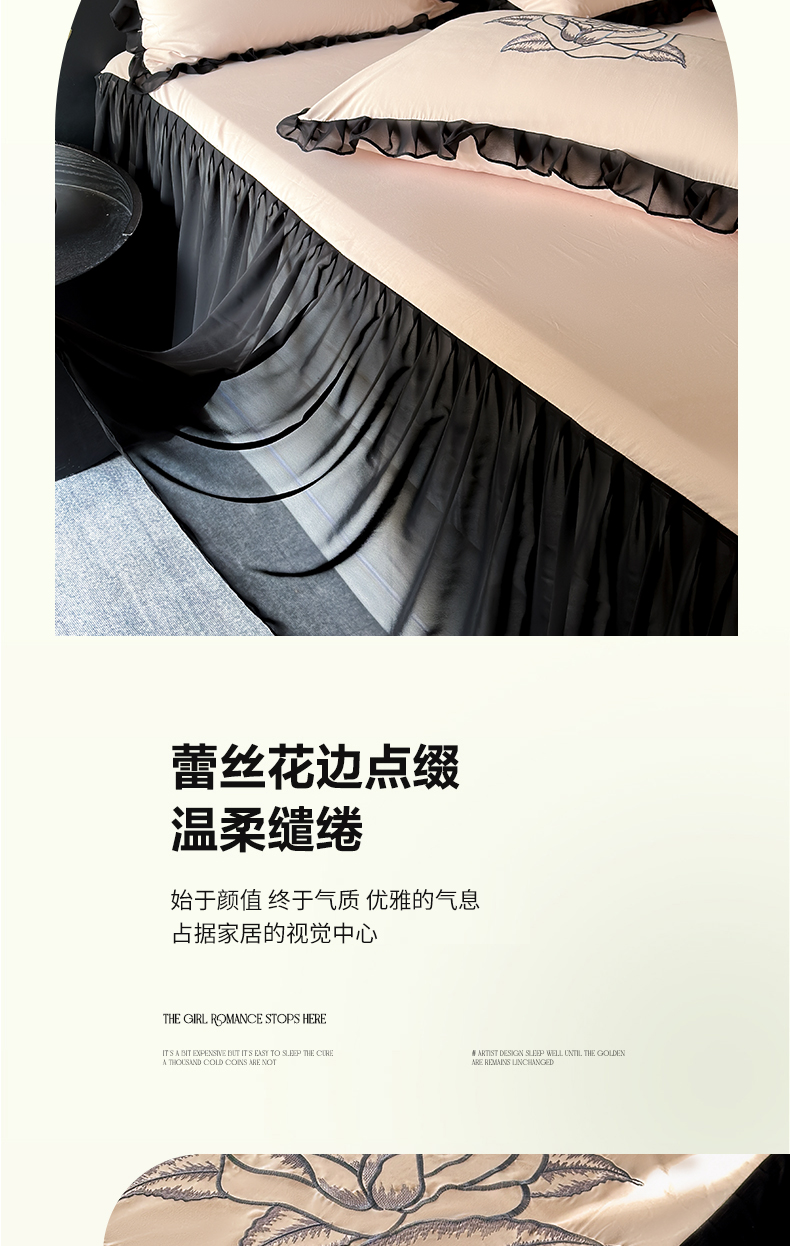 (总)豪美鑫 2025新款亲肤棉蕾丝花边四件套-爱丽丝系列,爱丽丝-粉玉,爱丽丝-湖水绿,爱丽丝-卡其,爱丽丝-奶油黄,爱丽丝-珍珠白