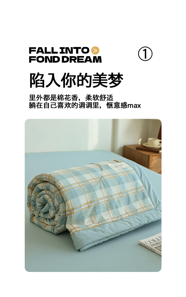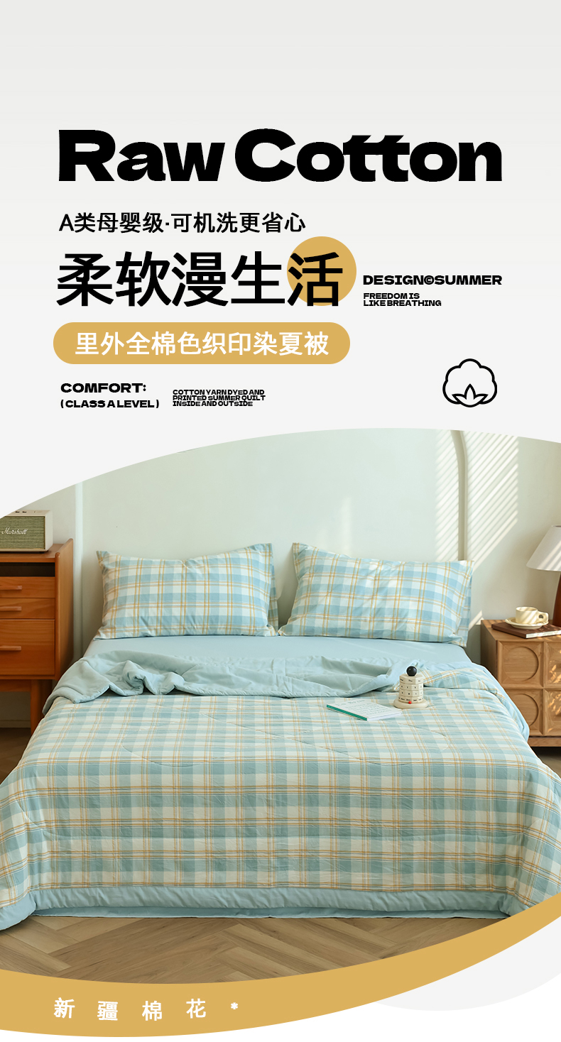 • 91家纺网 家纺一手货源 找家纺 雯雨家纺 2025新款A类无印风里外全棉纯棉水洗棉新疆棉花夏被夏凉被空调被 遇见蓝